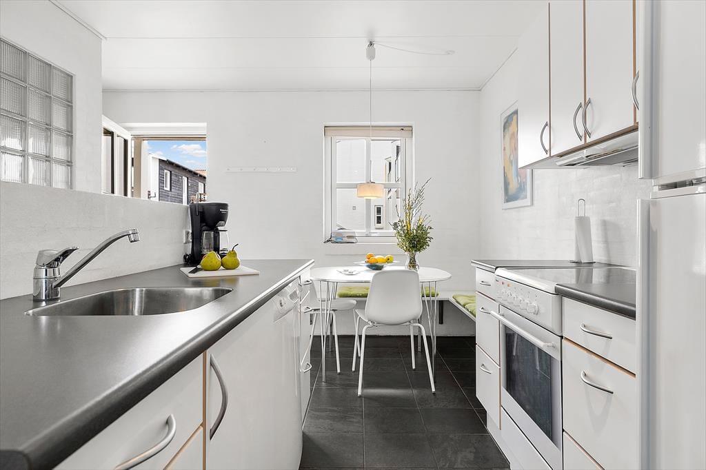 Obwohl die Wohnung mitten in der Stadt liegt, kannst du das Leben im Freien auf einer kleinen Terrasse und einem gemütlichen Balkon genießen. Die Terrasse bietet dir die Möglichkeit, im Freien zu essen oder mit einem guten Buch zu entspannen, während du die sommerliche Atmosphäre aufsaugst. Dank der kurzen Entfernung zum Strand von Tversted hast du jederzeit Zugang zu einem erfrischenden Bad in der Nordsee oder einem Spaziergang entlang der Küste, wo das Rauschen der Wellen beruhigend wirkt.