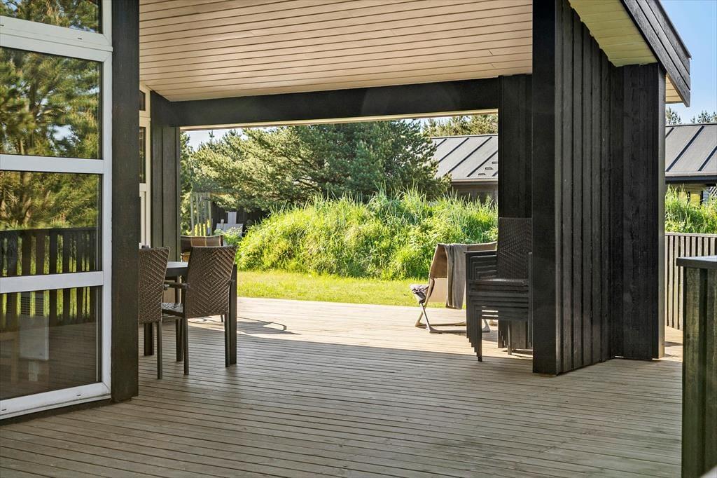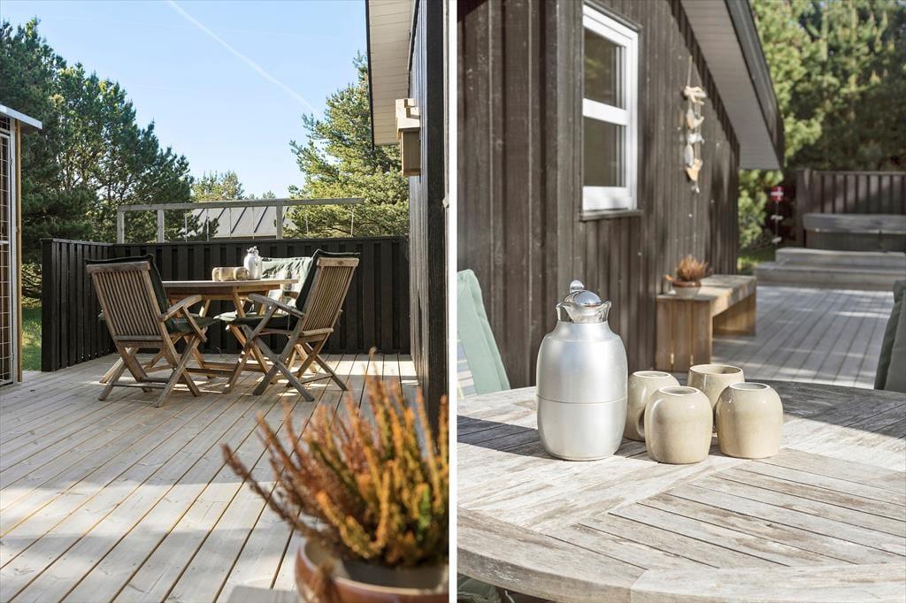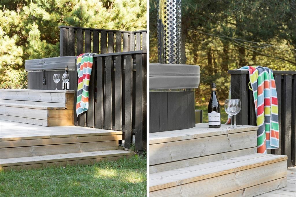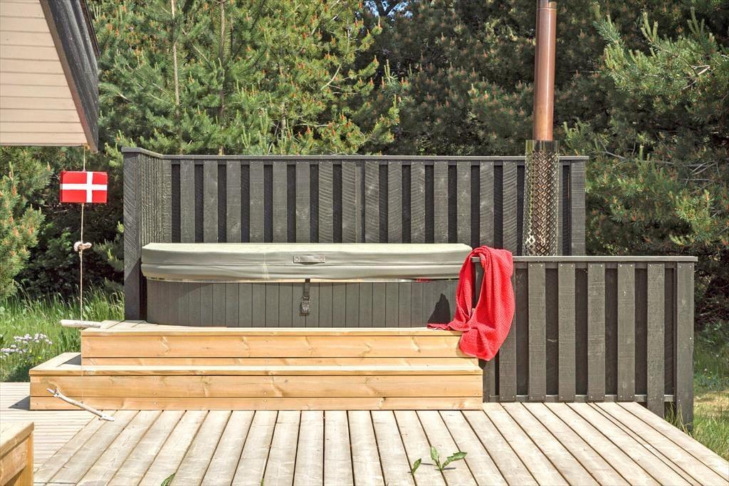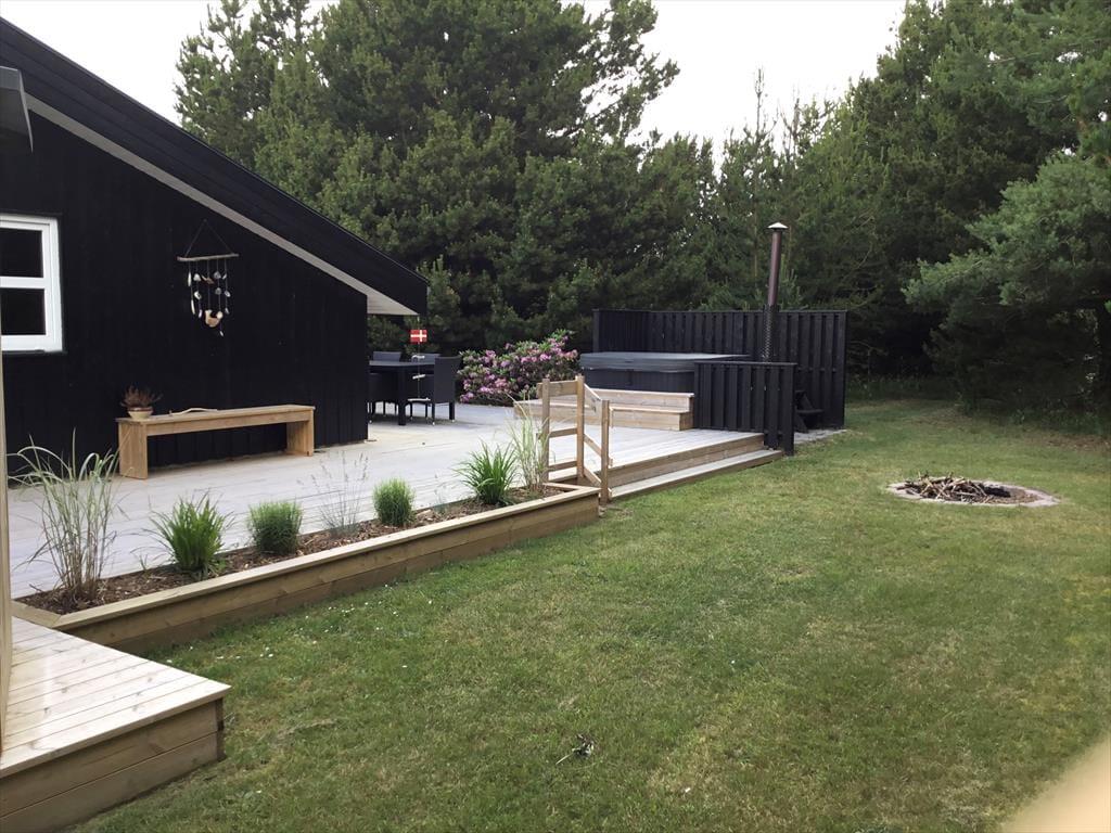 Die schönen Außenbereiche rund um das Ferienhaus bieten viel Platz, um das gute Wetter zu genießen. Die Terrasse eignet sich perfekt für Ihren Morgenkaffee in der Sonne, gemütliche Mittagessen und lange Sommerabende mit gegrillten Köstlichkeiten unter freiem Himmel. Der einladende Außen-Whirlpool ist ein besonderes Highlight, in dem Sie bei einem Glas Wein entspannen können, während Sie die Aussicht auf die umliegende Natur genießen. Der Garten bietet Platz für Spiel und Entspannung, und der kurze Fußweg zum Strand macht es einfach, den Tag am Wasser zu verbringen.