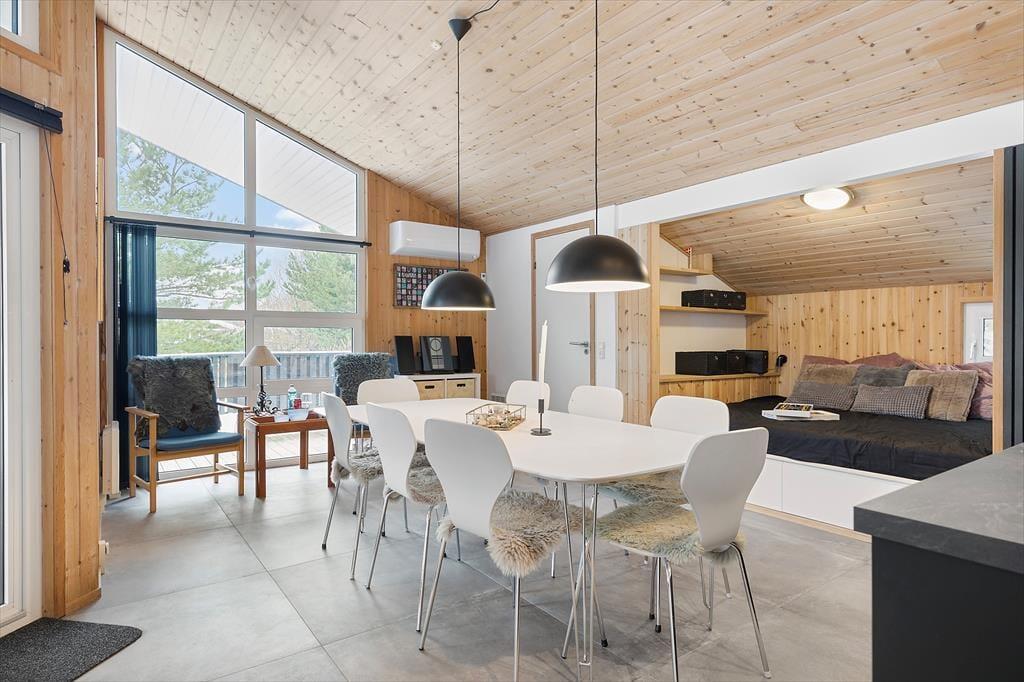 Beim Betreten dieses schönen Ferienhauses erwartet Sie eine helle und moderne Einrichtung, bei der große Fensterpartien viel Tageslicht hereinlassen. Das Wohnzimmer ist gemütlich eingerichtet und mit einer offenen Küche verbunden, sodass Sie die gemeinsame Zeit mit der Familie genießen können, egal ob Sie Mahlzeiten zubereiten oder mit einem guten Buch auf dem Sofa entspannen. Die komfortablen Schlafzimmer sorgen für einen erholsamen Schlaf, und das moderne Badezimmer lädt dazu ein, den Tag entspannt zu beginnen. Hier finden Sie alles, was Sie für unvergessliche Urlaubserinnerungen in entspannter Atmosphäre brauchen.