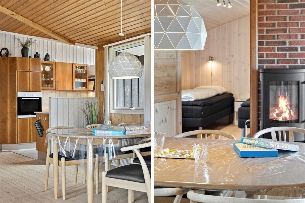 Im Inneren erwartet Sie ein helles und einladendes Ferienhaus, das sofort zum Wohlfühlen und Entspannen einlädt. Das geräumige Wohnzimmer, kombiniert mit der offenen Küche, schafft eine wunderbare Atmosphäre, in der sich die ganze Familie versammeln kann. Große Fenster lassen viel Tageslicht herein und bieten einen schönen Blick auf die grüne Natur. Die komfortablen Schlafzimmer des Ferienhauses sind ideal für lange, entspannte Morgen, an denen Sie in aller Ruhe in den Tag starten können.