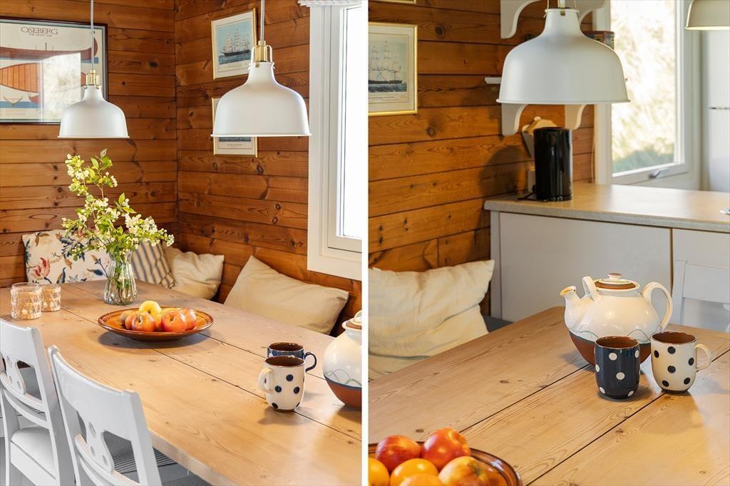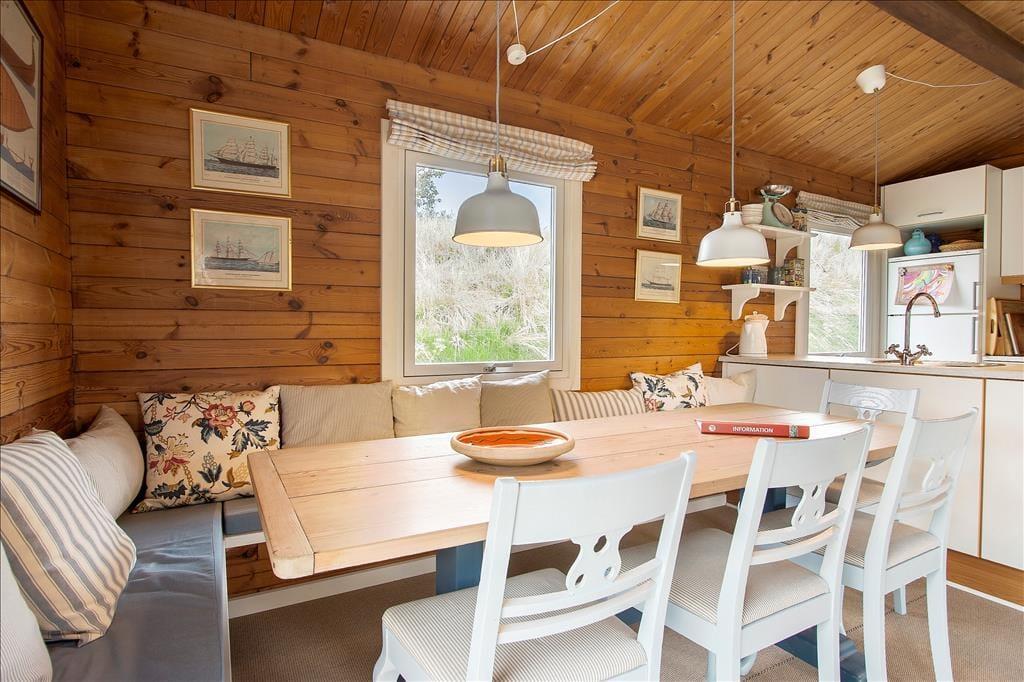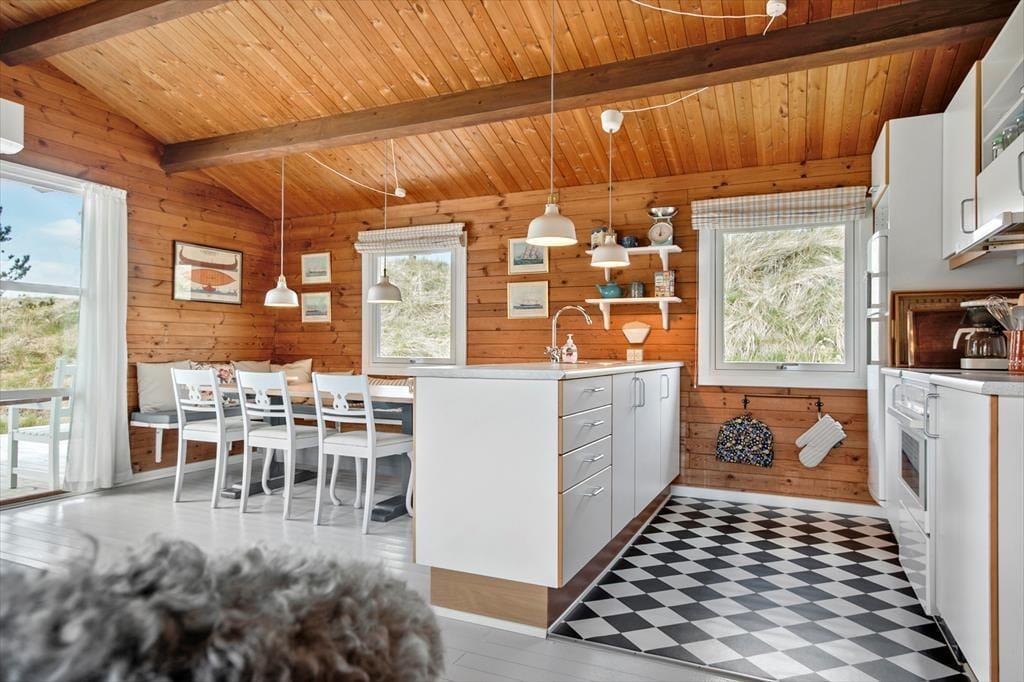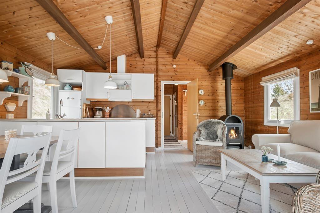 Beim Betreten des Ferienhauses empfängt Sie eine helle und einladende Atmosphäre, die sofort zur Entspannung und Gemütlichkeit einlädt. Der geräumige Wohnbereich, in dem Küche und Wohnzimmer integriert sind, bietet Platz für gemeinsame Mahlzeiten oder gemütliche Abende mit Brettspielen und Gesprächen vor den großen Fenstern, die den Blick auf die umliegende Natur freigeben. Die Schlafzimmer strahlen Ruhe und Komfort aus, sodass Sie erfrischt in den Tag starten können.