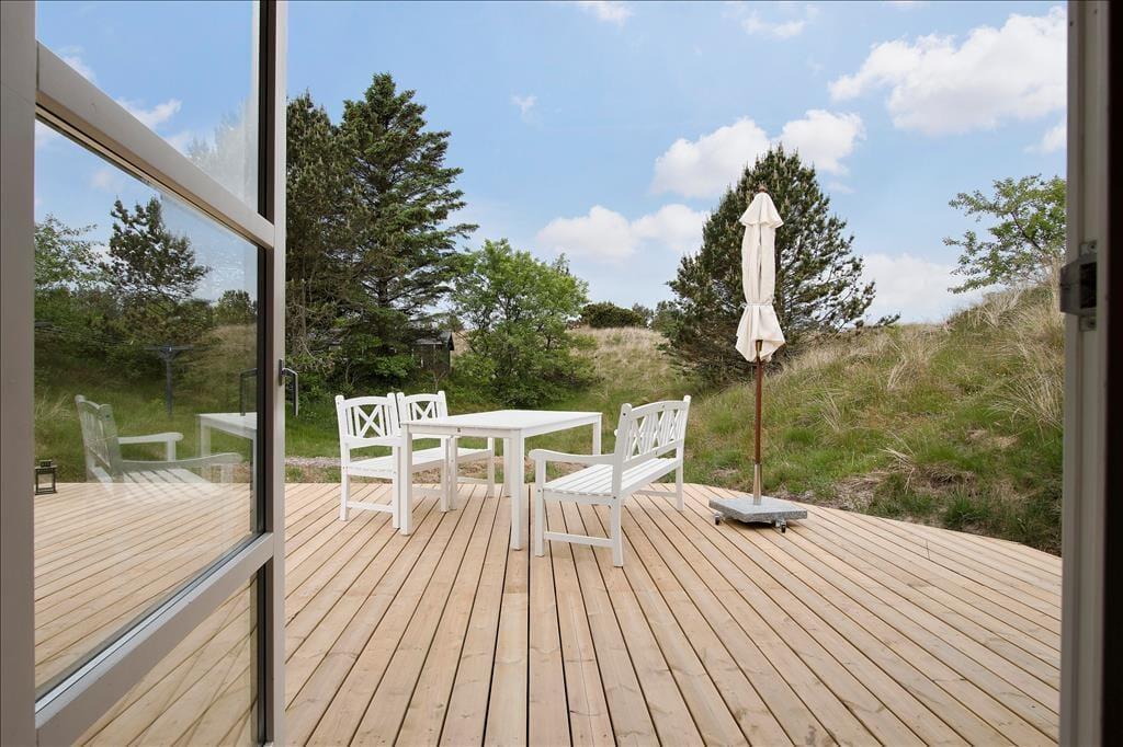 Die Außenbereiche sind eine Oase der Ruhe und Naturschönheit. Das Ferienhaus verfügt über eine große Terrasse, auf der Sie Ihren Morgenkaffee genießen, ein gutes Buch lesen oder ein köstliches Abendessen unter freiem Himmel grillen können. Das umliegende Naturgrundstück ist reich an Tierwelt – vielleicht entdecken Sie einen Hasen oder ein Reh, während Sie entspannen. Für Kinder gibt es viel Platz zum Spielen und Erkunden der großen Flächen, während der Rest der Familie die idyllische Umgebung genießt.