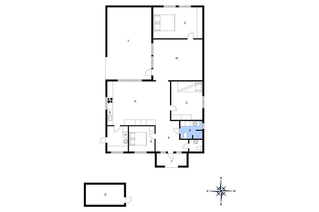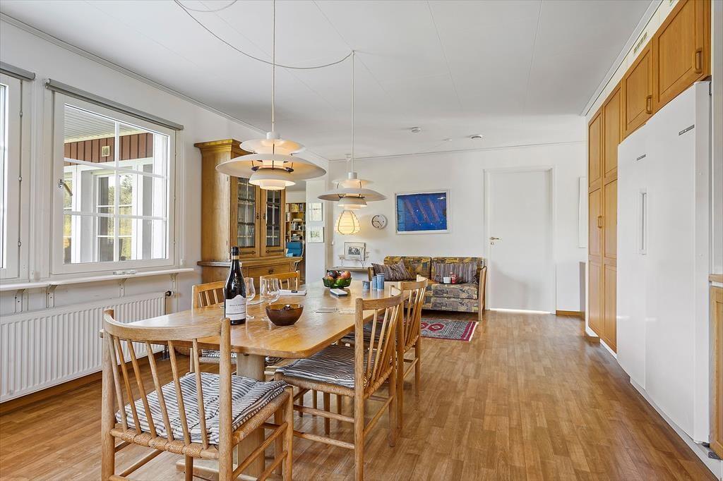 Tritt ein in dieses gemütliche und funktionale Ferienhaus, in dem Geräumigkeit und natürliches Licht im Mittelpunkt stehen. Das Haus verfügt über eine große, offene Wohnküche, die das Herz des Hauses bildet, wo alle gemeinsam kochen, essen und gemütliche Stunden in der Sofaecke verbringen können. Die großen Fenster lassen viel Tageslicht herein und bieten einen wunderbaren Blick auf den Garten. Das Interieur ist hell und einladend mit einer entspannten Atmosphäre, die es leicht macht, in Urlaubsstimmung zu kommen.