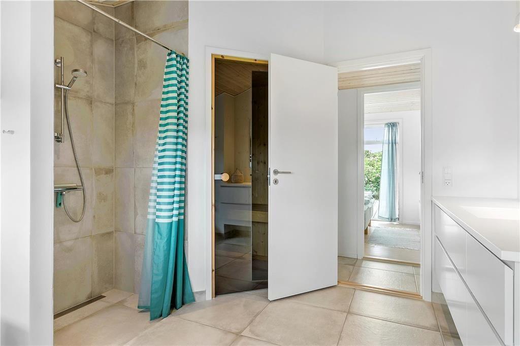 Wenn du das Haus betrittst, empfängt dich ein helles und offenes Ferienhaus mit moderner Einrichtung, das sofort zum Entspannen einlädt. Das geräumige Wohnzimmer bildet das Herzstück des Hauses, wo große Panoramafenster viel Licht hereinlassen und einen beeindruckenden Blick auf das Meer bieten. Der Kaminofen sorgt an kühlen Abenden für eine gemütliche Stimmung, und die offene Verbindung zwischen Küche und Wohnzimmer macht es leicht, gemeinsam Zeit zu verbringen, während das Essen zubereitet wird. Das Haus strahlt Ruhe aus, und die komfortablen Schlafzimmer machen es leicht, erholt aufzuwachen und voller Energie in einen erlebnisreichen Tag zu starten.