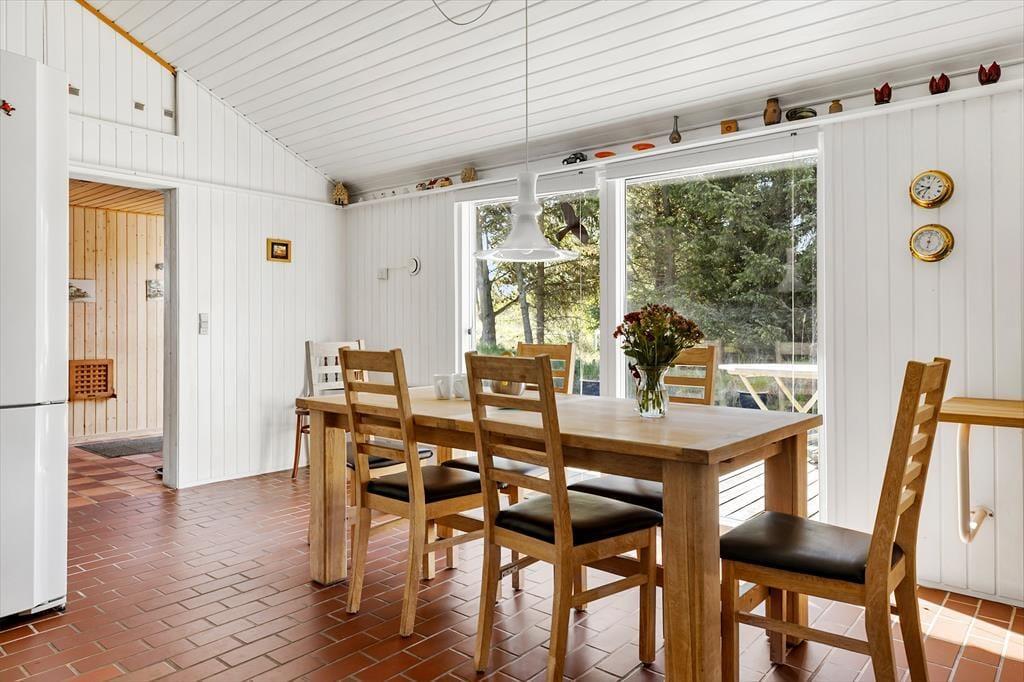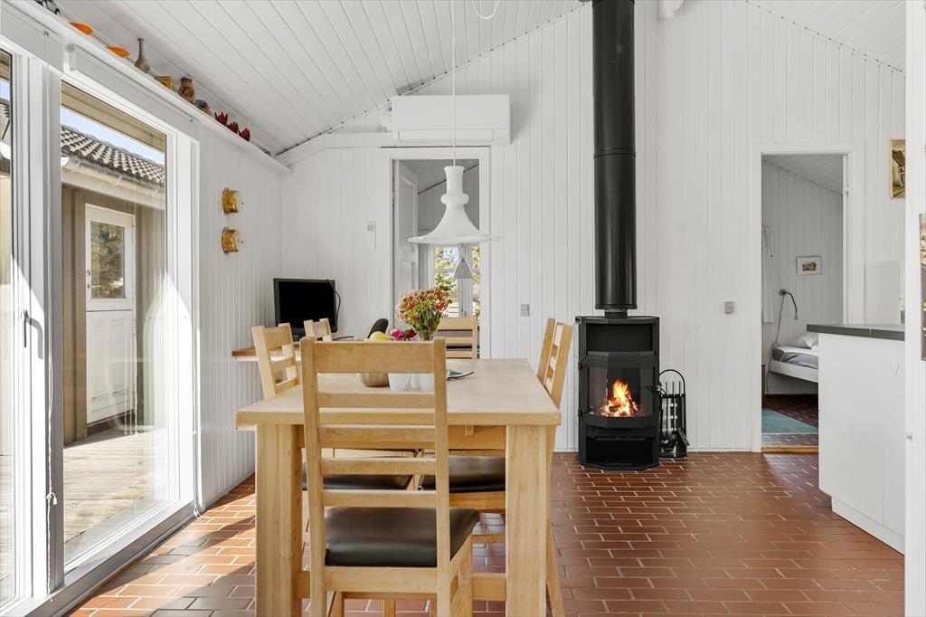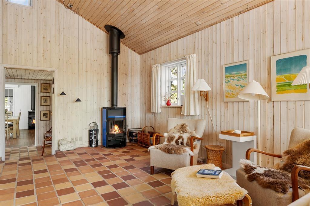 Das Ferienhaus empfängt dich mit einer hellen und großzügigen Atmosphäre, in der große Fenster und hohe Decken ein Gefühl von Freiheit und Nähe zur Natur schaffen. Der zentrale Wohnbereich kombiniert Wohnzimmer und Küche in einem offenen Grundriss, der das Zusammensein erleichtert – ob du dich auf dem Sofa entspannst, kochst oder ein Essen am Esstisch genießt. Der Kaminofen im Wohnzimmer sorgt an kühleren Tagen für Wärme und Gemütlichkeit, und die malerische Natur kann direkt durch die Fenster bewundert werden. Die Schlafzimmer sind komfortabel eingerichtet und laden zu erholsamen Nächten ein, sodass du frisch und bereit für die Abenteuer des Tages erwachst.