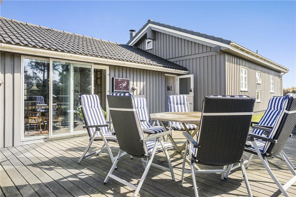 Die Außenbereiche rund um das Ferienhaus sind etwas ganz Besonderes. Die große Terrasse ist perfekt für Entspannung und Geselligkeit unter freiem Himmel – ob du deinen Morgenkaffee genießt, ein Buch liest oder mit der Familie grillst. Vom Grundstück aus hast du einen fantastischen Meerblick, der den Urlaubstagen einen Hauch von Luxus verleiht. Das Naturgrundstück rund um das Haus lädt zum Spielen und Erkunden ein, während die ruhige Umgebung dafür sorgt, dass du abschalten und die Stille genießen kannst.