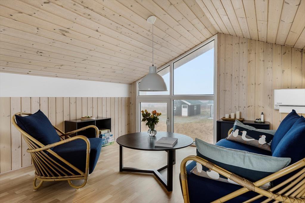 Wenn du dieses schöne Ferienhaus in Præstebakken 24 betrittst, wirst du sofort von einer hellen und luftigen Atmosphäre empfangen, in der große Fensterpartien die Natur ganz nah heranholen. Hier kannst du mit deinen Liebsten im geräumigen Wohnzimmer entspannen, wo die Sonnenstrahlen auf dem Holzboden tanzen und der Kamin an kühlen Abenden für wohlige Wärme sorgt. Vom Dachboden aus genießt du eine fantastische Aussicht auf die Landschaft und sogar einen Blick auf die nahegelegene Nordsee. Das Haus bietet Platz für sechs Personen, verteilt auf gemütliche Schlafzimmer, und mit zwei Badezimmern ist für einen hohen Komfort gesorgt. Die offene Küche ist direkt mit dem Wohnzimmer verbunden, sodass du auch beim Zubereiten der Urlaubsmahlzeiten gute Gespräche führen kannst.