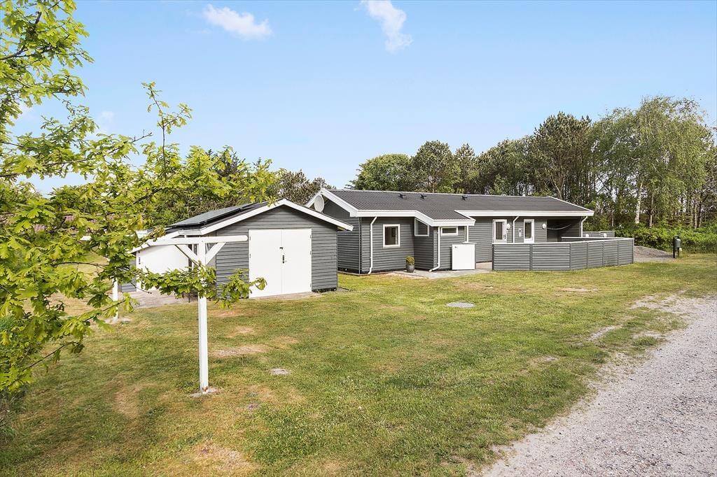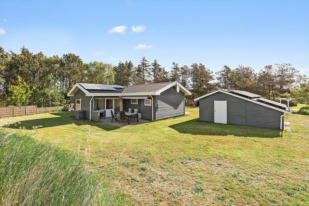 Das Ferienhaus bietet mehrere herrliche Terrassen, auf denen du den ganzen Tag über die Sonne genießen kannst. Beginne den Tag mit deinem Morgenkaffee auf der sonnigen Terrasse, wo die Vögel zwitschern und du dich langsam an den Urlaubsrythmus gewöhnst. Am Nachmittag kannst du die warme Sonne auf einer der anderen Terrassen genießen, während du dich in einem Liegestuhl entspannst oder das Abendessen auf dem mitgelieferten Grill zubereitest. Die sonnigen Terrassen sind ideal für ruhige Momente mit einem guten Buch oder gemütliche Mahlzeiten unter freiem Himmel. Das Haus ist von einem wunderschönen Naturgrundstück umgeben, das eine ruhige und private Atmosphäre bietet, in der die Kinder spielen können, während die Erwachsenen sich in der Sonne entspannen.