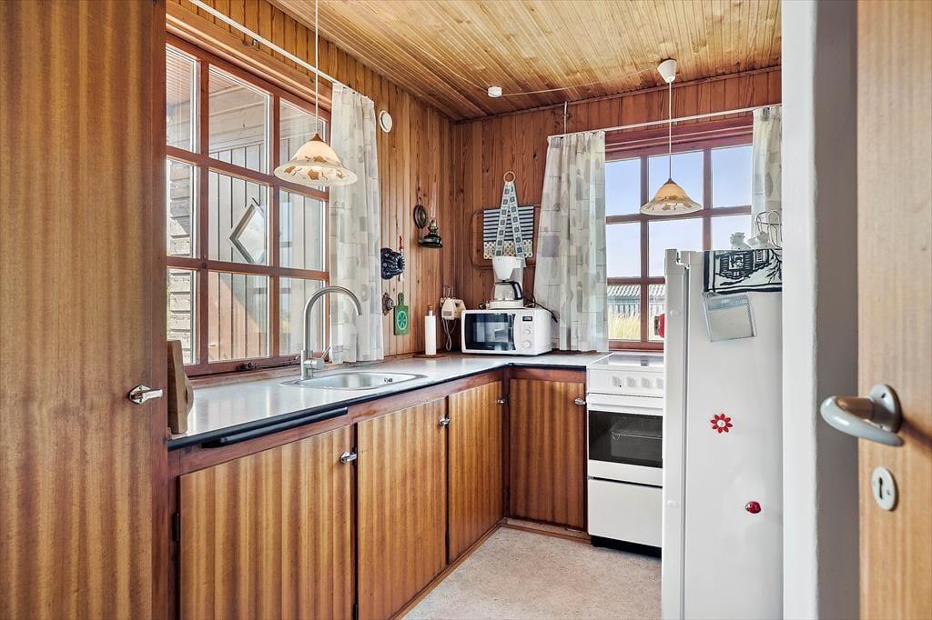 Das Ferienhaus verfügt über einen schönen Terrassenbereich, in dem du Stunden damit verbringen kannst, die Natur und die frische Luft zu genießen. Die große Holzterrasse lädt zu langen Mahlzeiten im Freien ein, oder du kannst dich einfach zurücklehnen und in der Liege entspannen, während du den ungestörten Blick auf die Landschaft genießt. Die umliegenden Naturgebiete bieten die Möglichkeit für gemütliche Spaziergänge in ruhiger Umgebung, und durch die kurze Entfernung zum Tversted Strand kannst du schnell den Sand zwischen den Zehen spüren und die erfrischende Brise vom Meer genießen. Das Ferienhaus ist perfekt gelegen für diejenigen, die Entspannung mit Naturerlebnissen kombinieren möchten.