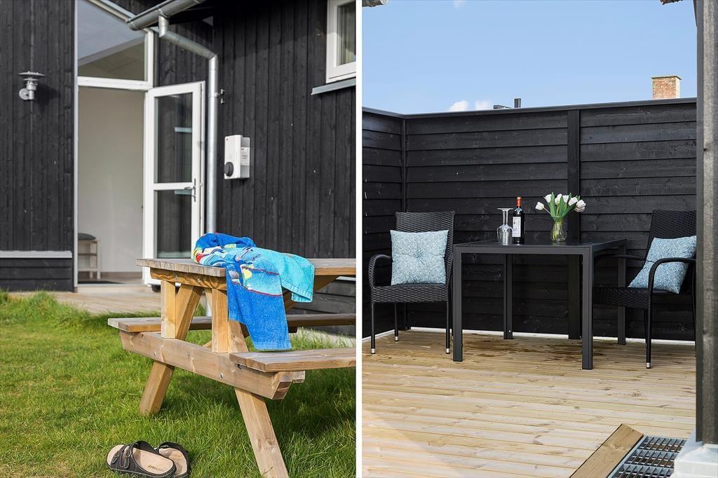 Das Leben im Freien gehört hier ganz selbstverständlich zum Urlaub dazu. Das Ferienhaus bietet tolle Terrassenbereiche – inklusive einer überdachten Fläche, die euch auch bei Sonne oder Sommerregen draußen verweilen lässt. Auf dem Naturgrundstück gibt es viel Platz zum Spielen und für Ballspiele. Überhaupt ist es ein wunderbarer Ort, um in Gesellschaft oder in Stille die grüne Umgebung zu genießen. Trinke morgens deinen Kaffee mit Blick auf die Natur und Vogelgezwitscher im Ohr, oder versammle deine Lieben am Abend zum Essen unter freiem Himmel. Hier findest du Raum für Bewegung und Entspannung – und wenn Kinder mit dabei sind, können sie sich auf eine Ferienzeit mit viel Freiheit und frischer Luft freuen. Die lauschigen Ecken der Terrasse laden zu langen Sommerabenden mit Decken, Laternen und leiser Unterhaltung ein.