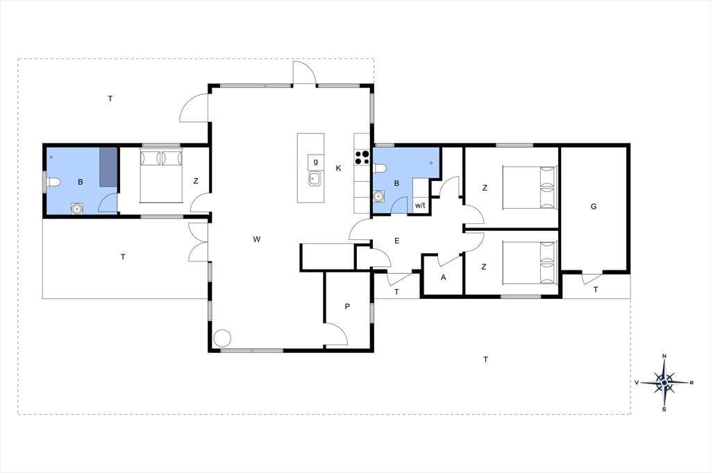 Als das Ferienhaus 2023 erbaut wurde, hat man selbstverständlich Rücksicht auf die umliegende Landschaft genommen. Deshalb sind Küche und Esstisch nach Norden ausgerichtet, sodass ihr beim Kochen oder beim gemeinsamen Essen direkt auf die Dünen und das Meer blicken könnt. Die Fensterfront reicht vom Boden bis zur Decke, sodass die Umgebung wirklich ins Haus geholt wird, und auch im offenen Wohnbereich mit Kaminofen, Sofaecke und großem Flachbildfernseher ist der Lichteinfall entsprechend schön. Ein weiteres angenehmes Detail des Hauses ist, dass die drei Schlafzimmer und zwei Badezimmer in zwei Bereiche aufgeteilt sind, sodass es reichlich Gelegenheit für Ruhe und Privatsphäre gibt, wenn Schlafenszeit ist. Alle drei Schlafzimmer sind mit Doppelbetten ausgestattet, und eines der Badezimmer verfügt über eine Wasch-Trocken-Säule, während das andere ein schönes Bad mit Badewanne bietet.