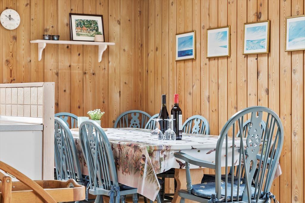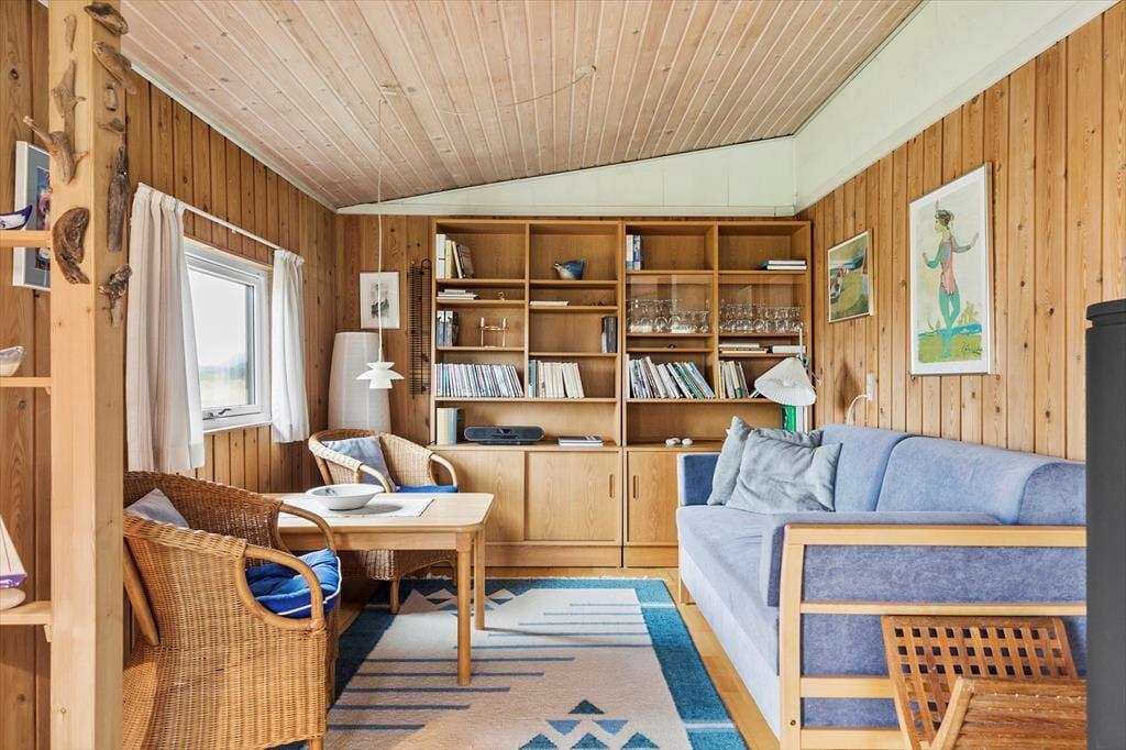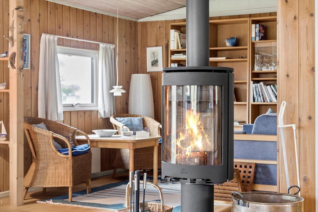 Innen empfängt dich eine helle und gemütliche Einrichtung, in der Wohn- und Küchenbereich offen miteinander verbunden sind, sodass du beim Kochen stets Teil des Geschehens bleibst. Der Kaminofen steht bereit, um an kühlen Tagen für Wärme und Behaglichkeit zu sorgen, während die großen Fenster die Natur direkt ins Haus holen. Die Einrichtung ist schlicht und einladend – hier kannst du dich mit einem guten Buch entspannen, eine Tasse Kaffee genießen oder die Familie zu einem Brettspiel am Esstisch versammeln. Wenn es draußen dunkel wird, hörst du den Wind durch die Dünen rauschen und genießt die Ruhe, die dich umgibt.