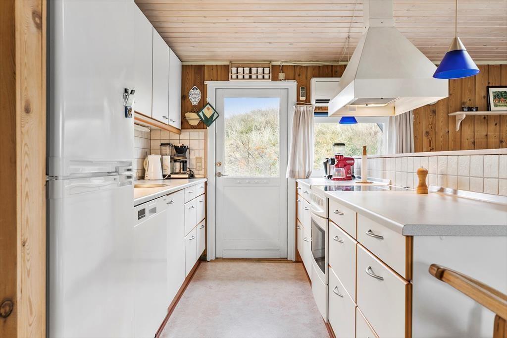 Draußen erwarten dich mehrere schöne Terrassenbereiche, auf denen du im Laufe des Tages Sonne oder Windschutz findest. Perfekt, um den Morgen mit frisch gebrühtem Kaffee zu beginnen, während die Sonne langsam das Naturgrundstück erwärmt, oder den Tag mit einem Glas Wein zu beenden, während der Himmel in den Farben des Sonnenuntergangs erstrahlt. Das Grundstück ist von Dünen umgeben, was eine angenehme, ungestörte Atmosphäre schafft, und die ruhige Umgebung lädt dazu ein, das Tempo herunterzufahren. Da Hunde im Haus erlaubt sind, kann auch dein vierbeiniger Freund die kleinen Pfade und offenen Flächen direkt vor der Haustür erkunden.