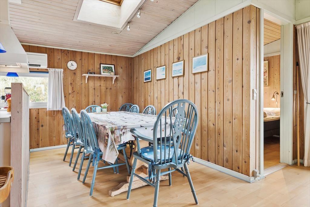 In ruhiger Lage am Ende einer Sackgasse findest du dieses helle und charmante Ferienhaus in der Svallerhulvej 32. Hier bist du von einem schönen Naturgrundstück mit Blick auf die Dünen umgeben – und mit der Nordsee in fußläufiger Entfernung kannst du dich auf Tage voller Meeresluft, Ruhe und Entspannung freuen.