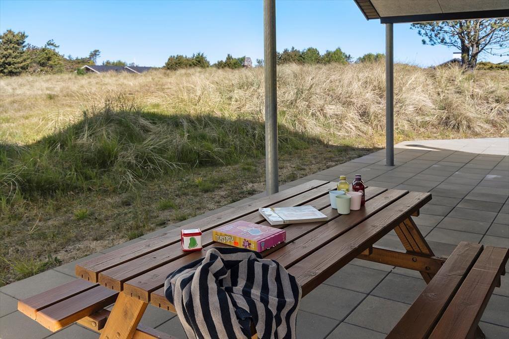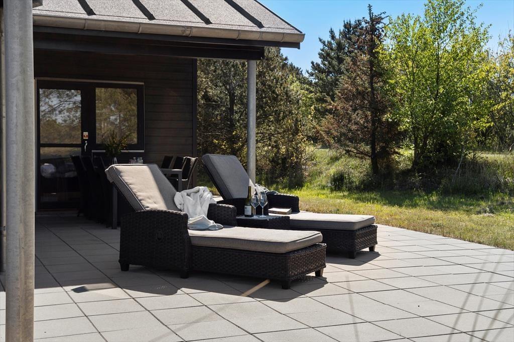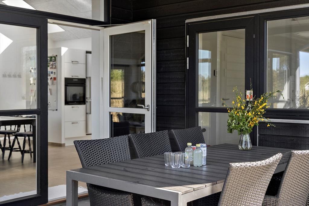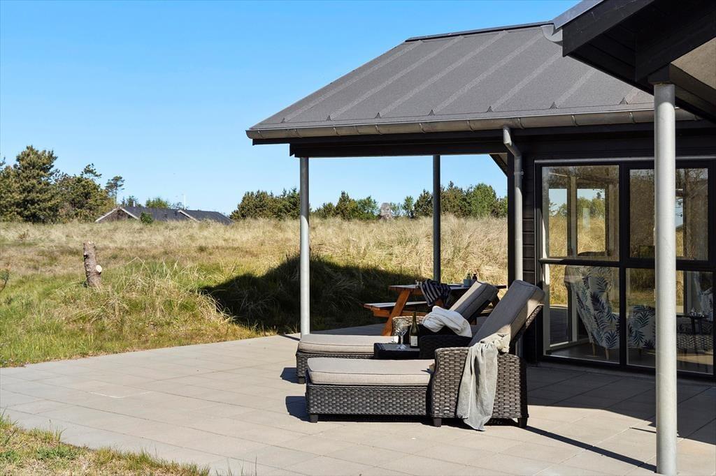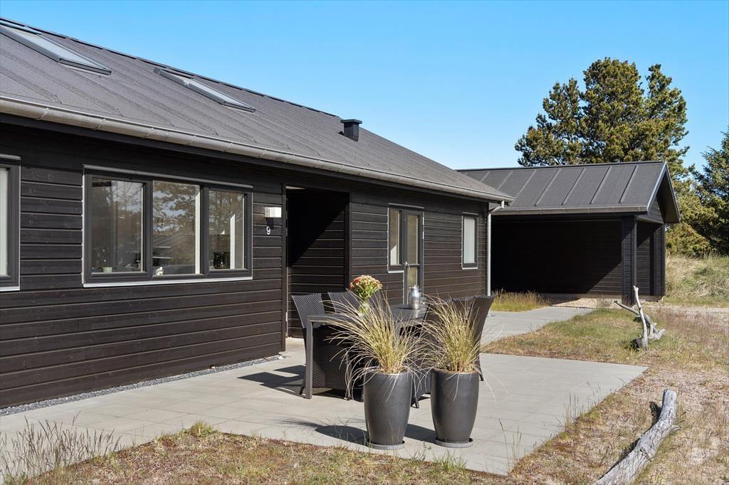 An einem sonnigen Sommertag können Sie das Faulenzen im Freien beginnen, sobald Sie aufwachen. Die Terrasse ist groß und verfügt sowohl über offene als auch überdachte Bereiche, sodass Sie frei wählen können, ob Sie Ihren Morgenkaffee in der Sonne trinken oder einen schattigen Sitzplatz finden möchten. Hier können Sie stundenlang sitzen, wenn das Ihr Traum ist, und eine Runde Wikingerspiele oder andere Gartenspiele kann auch auf dem Rasen stattfinden, bevor die Familie sich zu einem leckeren Mittagessen im Freien versammelt. Auf dem Naturgrundstück gibt es einen Carport, und wenn Sie mit einem Elektroauto angekommen sind, haben Sie die Möglichkeit, es aufzuladen.