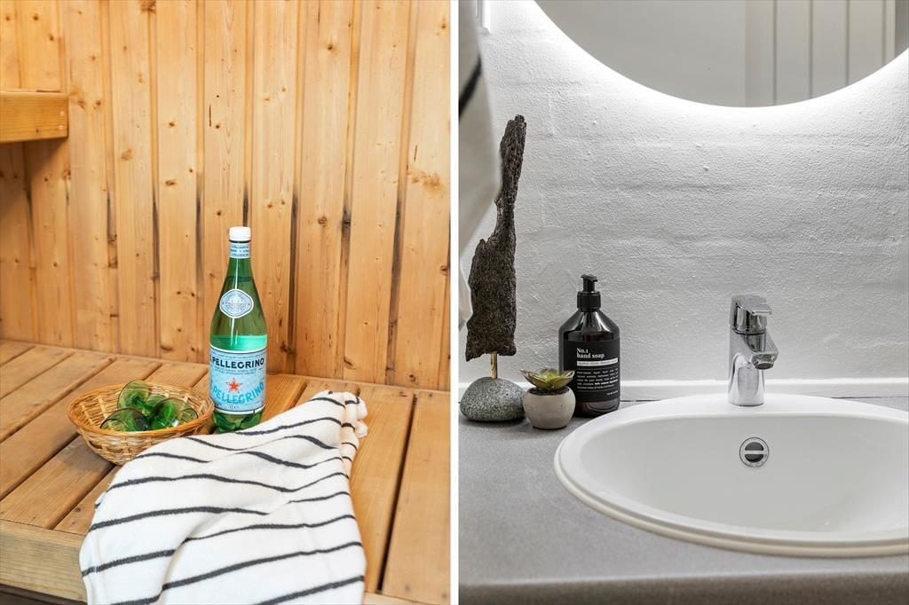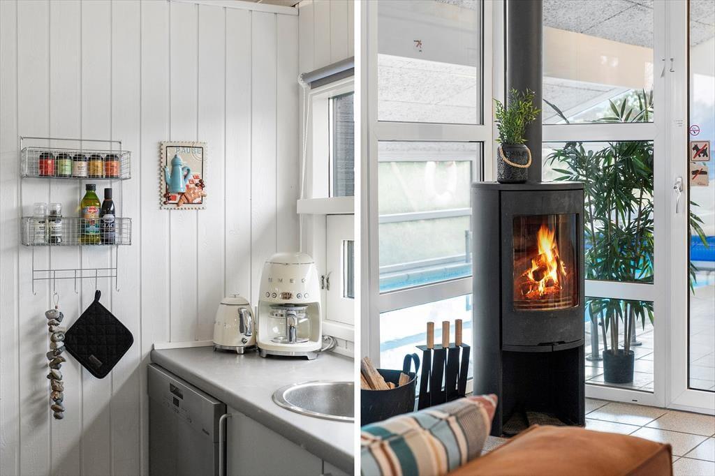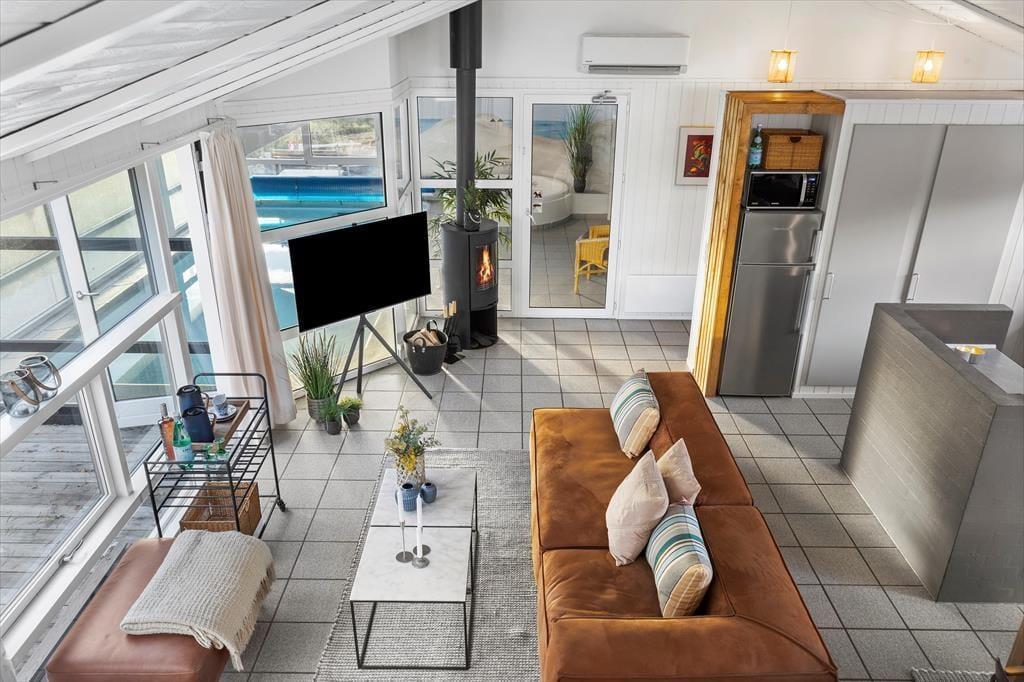 Im Inneren erwartet Sie ein stilvolles, lichtdurchflutetes Interieur mit großen Fenstern, die viel Tageslicht hereinlassen und eine ruhige, offene Atmosphäre schaffen. Die hellen Materialien und das moderne Design sorgen für eine entspannte Stimmung, bei der Sie sofort abschalten können. Wohnzimmer und Küche sind offen miteinander verbunden – ideal, um gemeinsam zu kochen, zu essen und die Zeit miteinander zu genießen. Auf dem Sofa ist Platz für gemütliche Filmabende oder Spiele mit der Familie, während das Feuer im Kamin knistert. Das Highlight des Hauses ist der einladende Poolbereich – hier können Kinder planschen, während die Erwachsenen vielleicht die Schwimmtrainer ausprobieren oder in der Sauna entspannen. Zwei schöne Badezimmer sorgen für zusätzlichen Komfort und machen den Aufenthalt besonders angenehm.