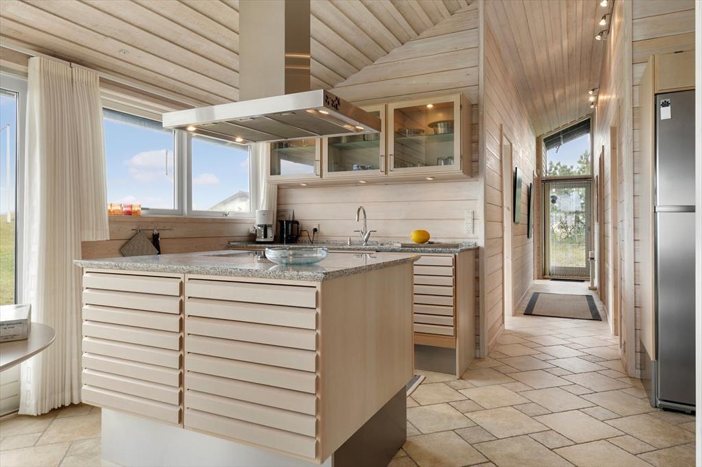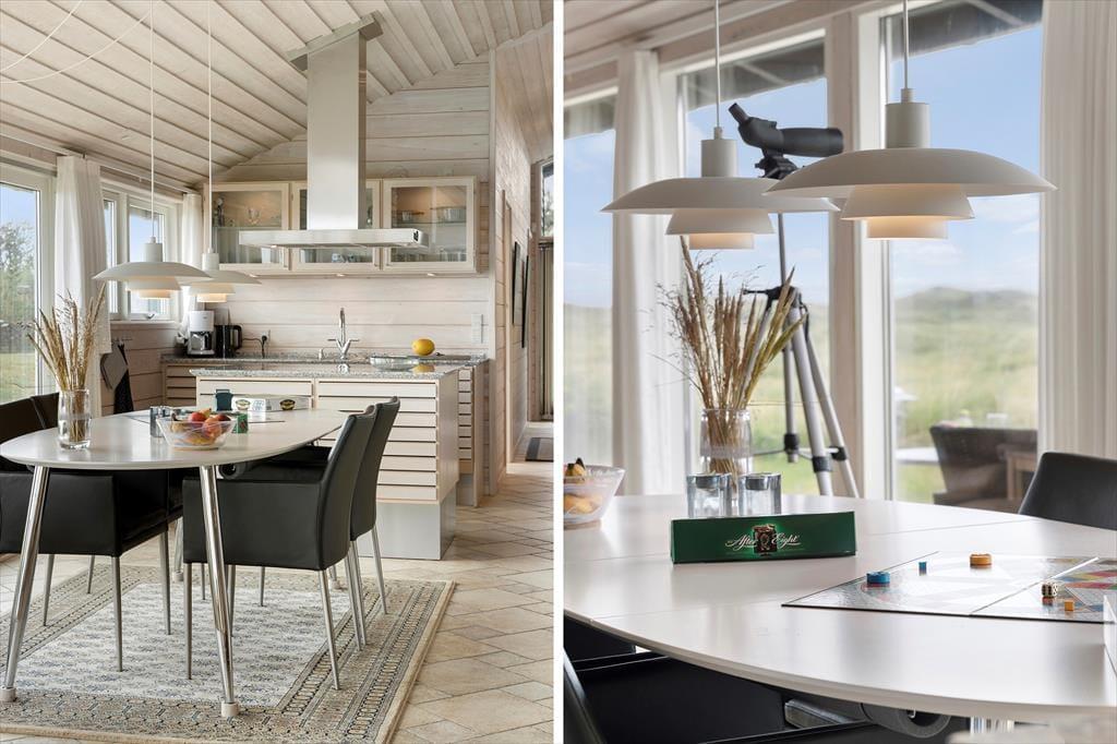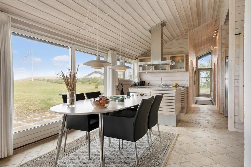 Beim Betreten des Ferienhauses werden Sie von hellen und geräumigen Räumen empfangen, die nur einem Zweck dienen – Ihnen ein Gefühl der Entspannung und des Wohlbefindens zu vermitteln. Die großen Panoramafenster des Hauses bieten eine beeindruckende Aussicht auf die Dünenlandschaft und die Nordsee und lassen das Licht hereinströmen, sodass die Stimmung der Natur zu einem integralen Bestandteil der Atmosphäre im Haus wird. Hier finden Sie jeglichen modernen Komfort, den Sie benötigen, und mit einer offenen Küche und einem Wohnbereich gibt es perfekte Bedingungen für gesellige Momente, in denen sich die Familie beim Kochen und gemeinsamen Mahlzeiten versammeln kann. Egal, ob Sie einen ruhigen Moment alleine oder in Gesellschaft genießen möchten, dieses Ferienhaus bietet die idealen Rahmenbedingungen für einen Urlaub mit Fokus auf Ruhe und Nähe.