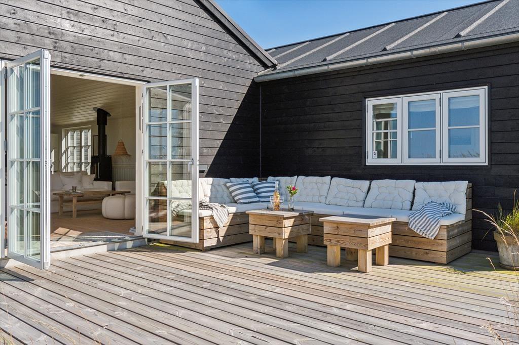 Die Außenbereiche dieses Ferienhauses sind für Entspannung und schöne Erlebnisse geschaffen. Die große Terrasse erstreckt sich entlang des Hauses und bietet sowohl sonnige als auch schattige Ecken, in denen du deinen ganz persönlichen Lieblingsplatz finden kannst. Beginne den Tag mit einer frisch gebrühten Tasse Kaffee, während die Morgensonne die Dünen in goldenes Licht taucht. Die Abende laden zu Grillabenden mit frisch gefangenem Fisch ein, während die Sonne langsam am Horizont untergeht. Der Grund ist von der natürlichen Dünenlandschaft umgeben und die offene Weite vermittelt ein Gefühl von Freiheit und Ruhe, das nur die Natur bieten kann.