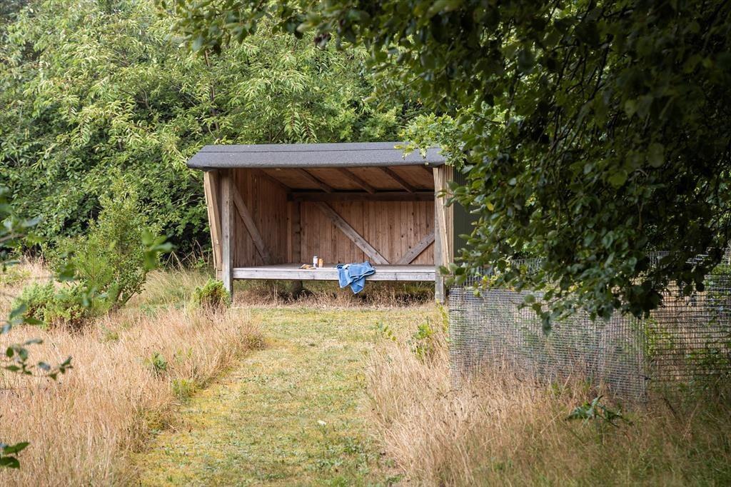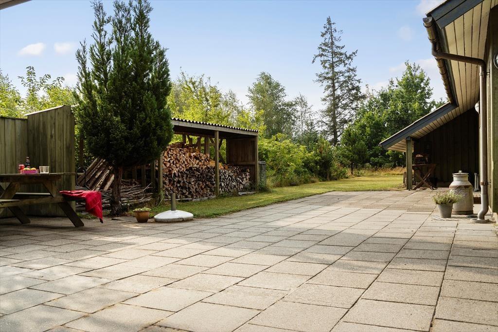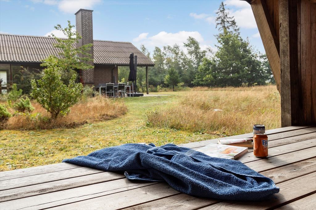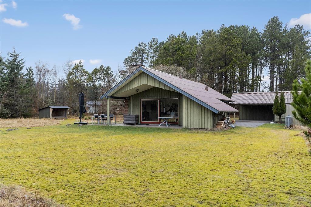 Der Außenbereich ist ein wahres Juwel. Das Ferienhaus liegt auf einem großen, schönen Naturgrundstück, das viel Platz zum Spielen, Entspannen und für gemütliche Momente unter freiem Himmel bietet. Die einladende Feuerstelle ist windgeschützt, sodass Sie mit der Familie gemütlich am Feuer sitzen und Marshmallows rösten können, während die Sonne untergeht. Das Grundstück lädt zum Entspannen in der Sonnenliege ein, während die Vögel im Hintergrund zwitschern. Wenn Sie die Umgebung erkunden möchten, können Sie eine Radtour oder Wanderung durch die wunderschöne Landschaft unternehmen. Zudem verfügt das Ferienhaus über einen praktischen Carport, sodass Ihr Auto an heißen Sommertagen im Schatten steht.