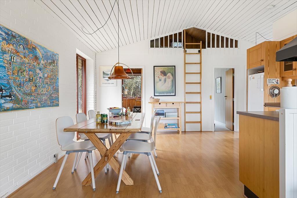 Mit seiner Lage in Tversted ist das Ferienhaus ideal für alle, die die Natur Nordjütlands und die Atmosphäre eines gemütlichen Küstenortes erleben möchten. Der breite Sandstrand von Tversted ist fußläufig erreichbar – hier können Sie ein erfrischendes Bad nehmen, Sandburgen bauen oder lange Spaziergänge am Wasser unternehmen. Die kleinen Geschäfte und Restaurants der Stadt sind in kurzer Entfernung, sodass Sie sich problemlos ein Eis bei einer der bekannten Eisdielen holen oder ein köstliches Abendessen mit lokalen Spezialitäten genießen können. Für Naturliebhaber ist die Tversted Klitplantage ein perfektes Ausflugsziel, wo Sie auf gewundenen Pfaden zu Fuß oder mit dem Fahrrad die einzigartige Kombination aus Dünen, Seen und Wald erleben können.