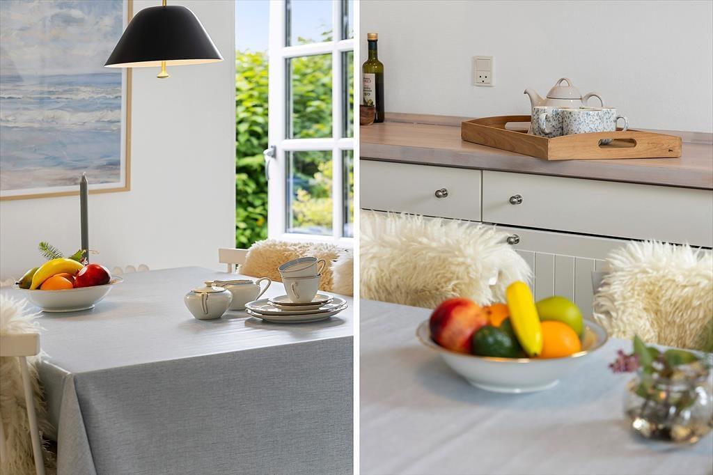 Wenn Sie das Ferienhaus auf Nøddevænget betreten, senkt sich das Tempo fast von selbst. Die authentische Sommerhaus-Atmosphäre lässt Sie sofort abschalten und den Urlaub mit allen Sinnen genießen. Die Einrichtung ist gemütlich und einladend, ganz auf das Zusammensein mit Familie, Partner oder Freunden ausgelegt. Im großen Wohnzimmer können Sie gemeinsam spielen, erzählen oder einfach entspannen, und die offene Küche macht es leicht, gemeinsam zu kochen. Liebevolle Details verleihen dem Haus Wärme und Persönlichkeit – und es ist leicht, sich vorzustellen, wie schön ein verregneter Nachmittag vor dem Kamin oder ein langsamer Morgen mit frischem Kaffee hier sein kann.