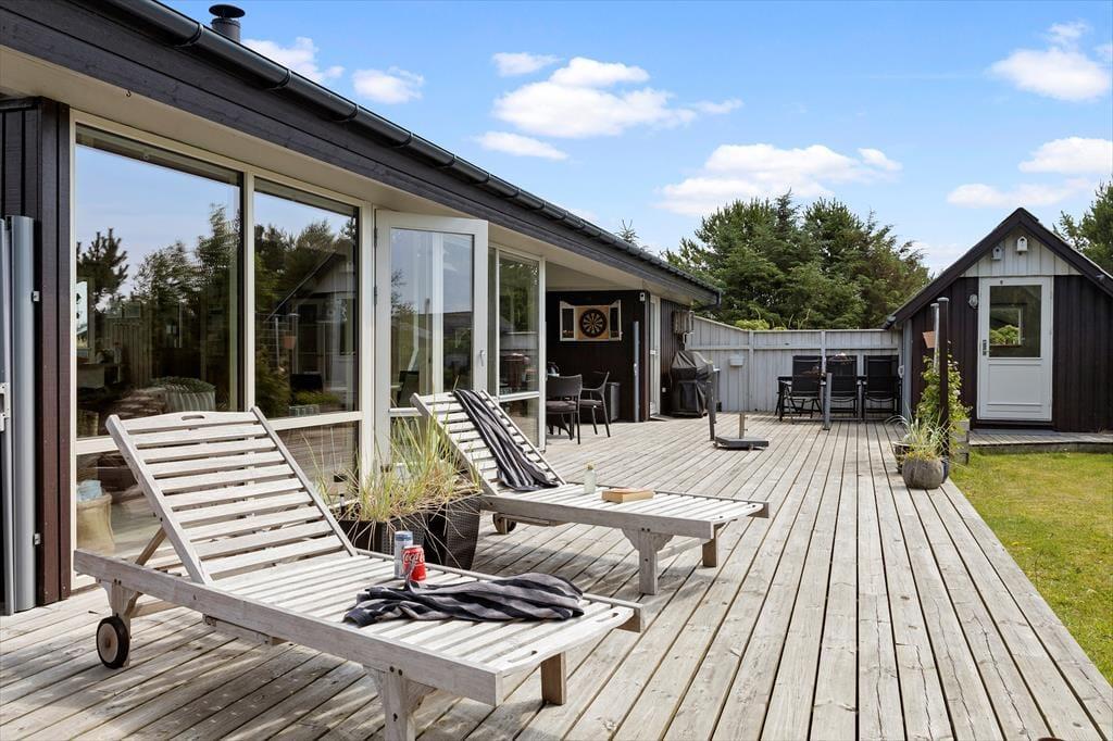 Das eingezäunte Grundstück rund um das Ferienhaus bietet eine besondere Sicherheit und Ruhe, die man nur selten findet. Hier können Sie die Sonne auf der Terrasse genießen oder die Kinder und Ihre vierbeinigen Freunde auf der grünen Wiese frei spielen lassen. Der gemütliche Garten ist von Bäumen und Sträuchern umgeben, die vor neugierigen Blicken schützen, und Sie können lange Sommerabende unter freiem Himmel mit Grillen und guten Gesprächen verbringen. Die Umgebung lädt zu Spielen im Freien ein, während Vögel im Hintergrund zwitschern und die frische Luft von Wald und Strand erfüllt ist. Für Naturliebhaber gibt es zahlreiche Rad- und Wanderwege, die sich durch die wunderschöne Landschaft von Tversted schlängeln und es leicht machen, die Gegend auf eigene Faust zu entdecken.