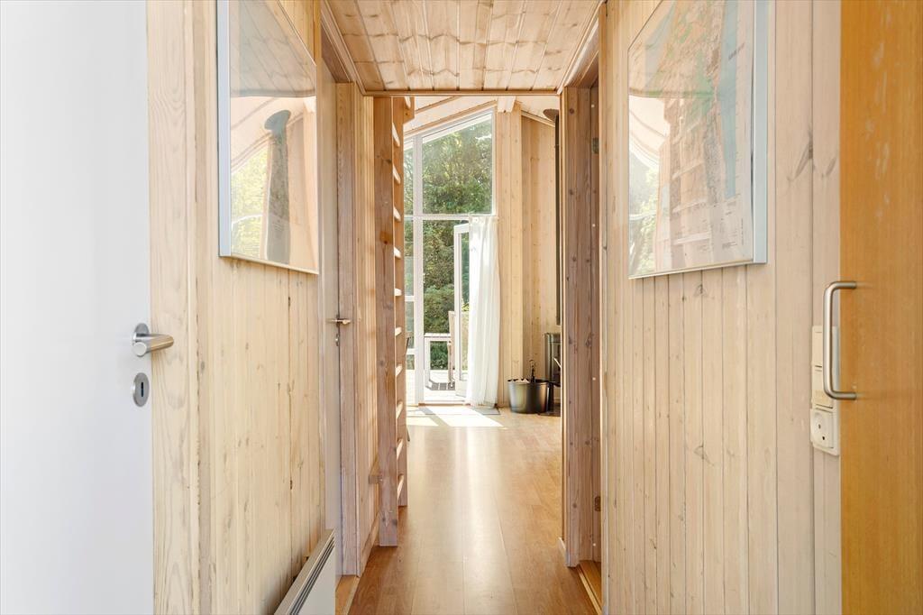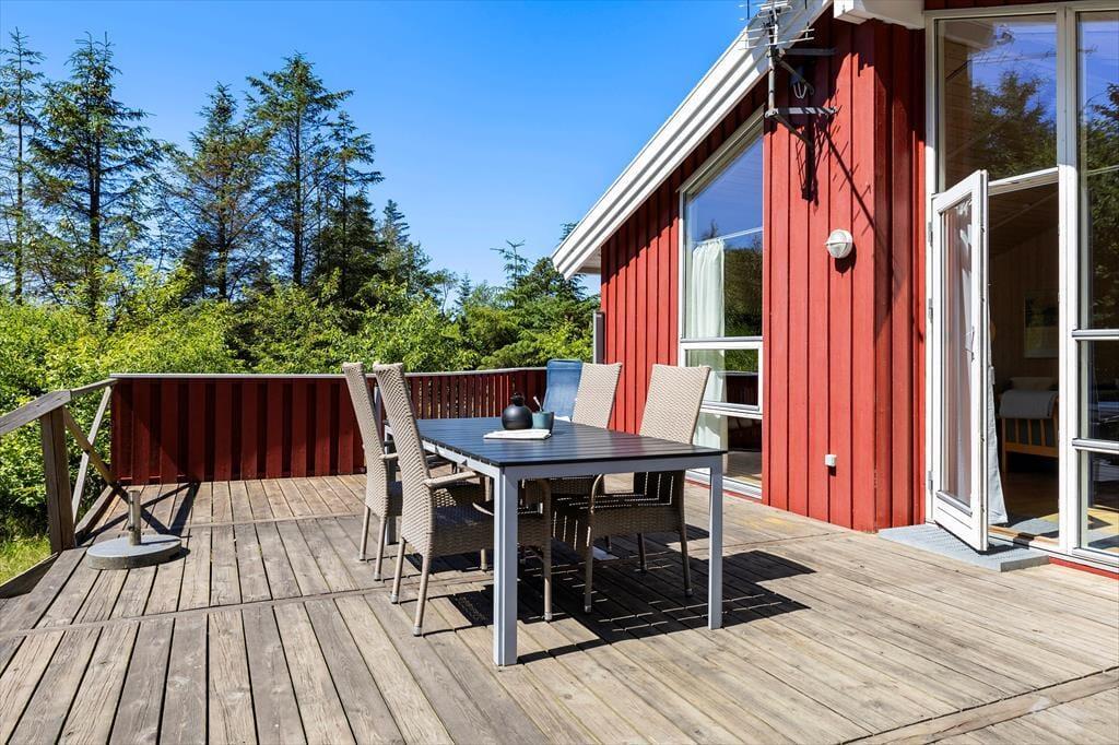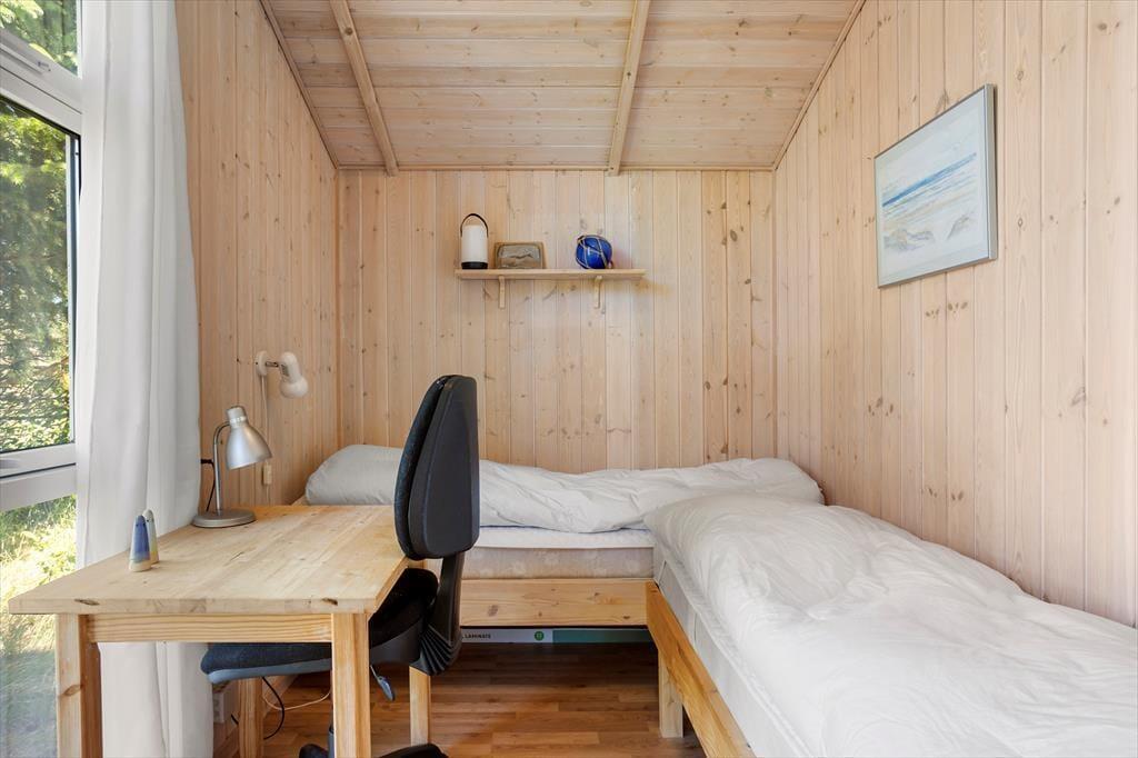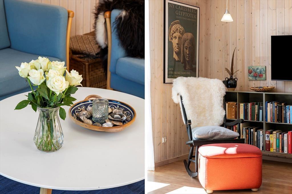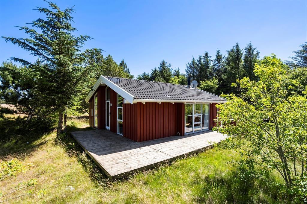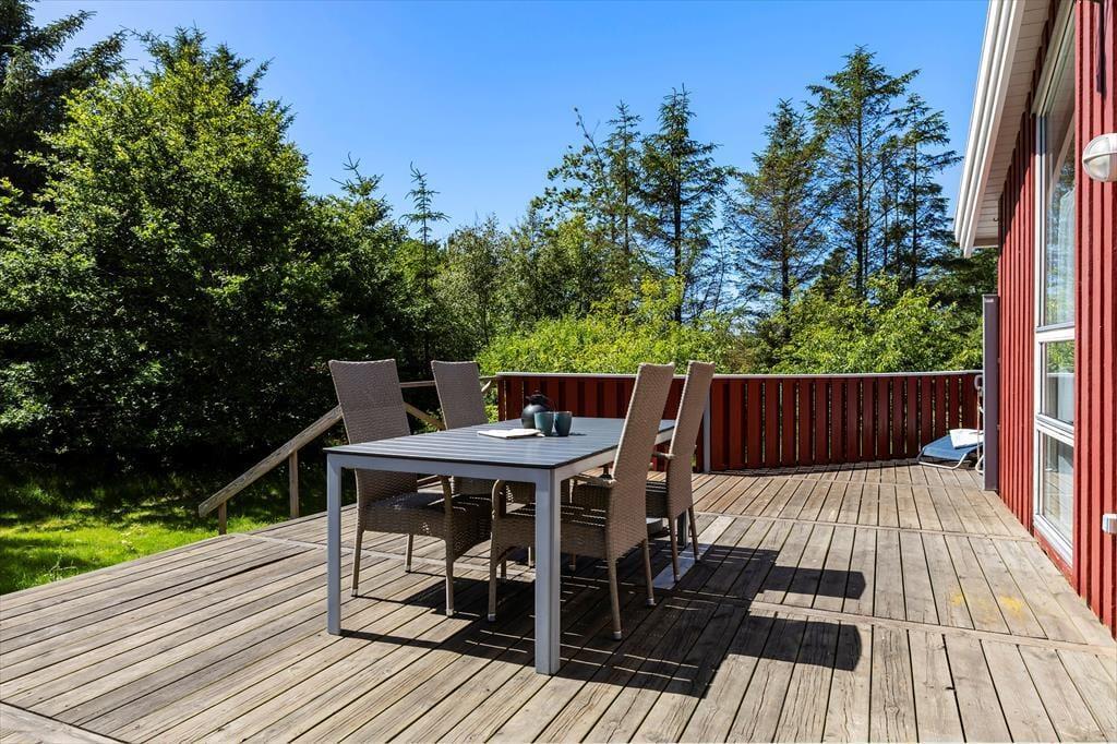 Drinnen erwartet dich eine behagliche Atmosphäre, die sofort Urlaubsstimmung aufkommen lässt. Die Einrichtung ist gemütlich im klassischen dänischen Ferienhausstil mit Holzverkleidung und großen Fenstern, die viel Licht hereinlassen und den Blick ins Grüne freigeben. Im Wohnbereich könnt ihr es euch gemeinsam vor dem Kaminofen gemütlich machen oder nach einem Tag voller Abenteuer entspannt auf dem Sofa relaxen. Die offene Küche ist praktisch mit dem Wohnbereich verbunden – so kannst du jederzeit Kaffee nachschenken oder leckere Snacks zubereiten, während ihr euch am Esstisch unterhaltet. Am Abend laden die Schlafzimmer zu erholsamem Schlaf ein, damit du am nächsten Morgen frisch in einen neuen Urlaubstag starten kannst.