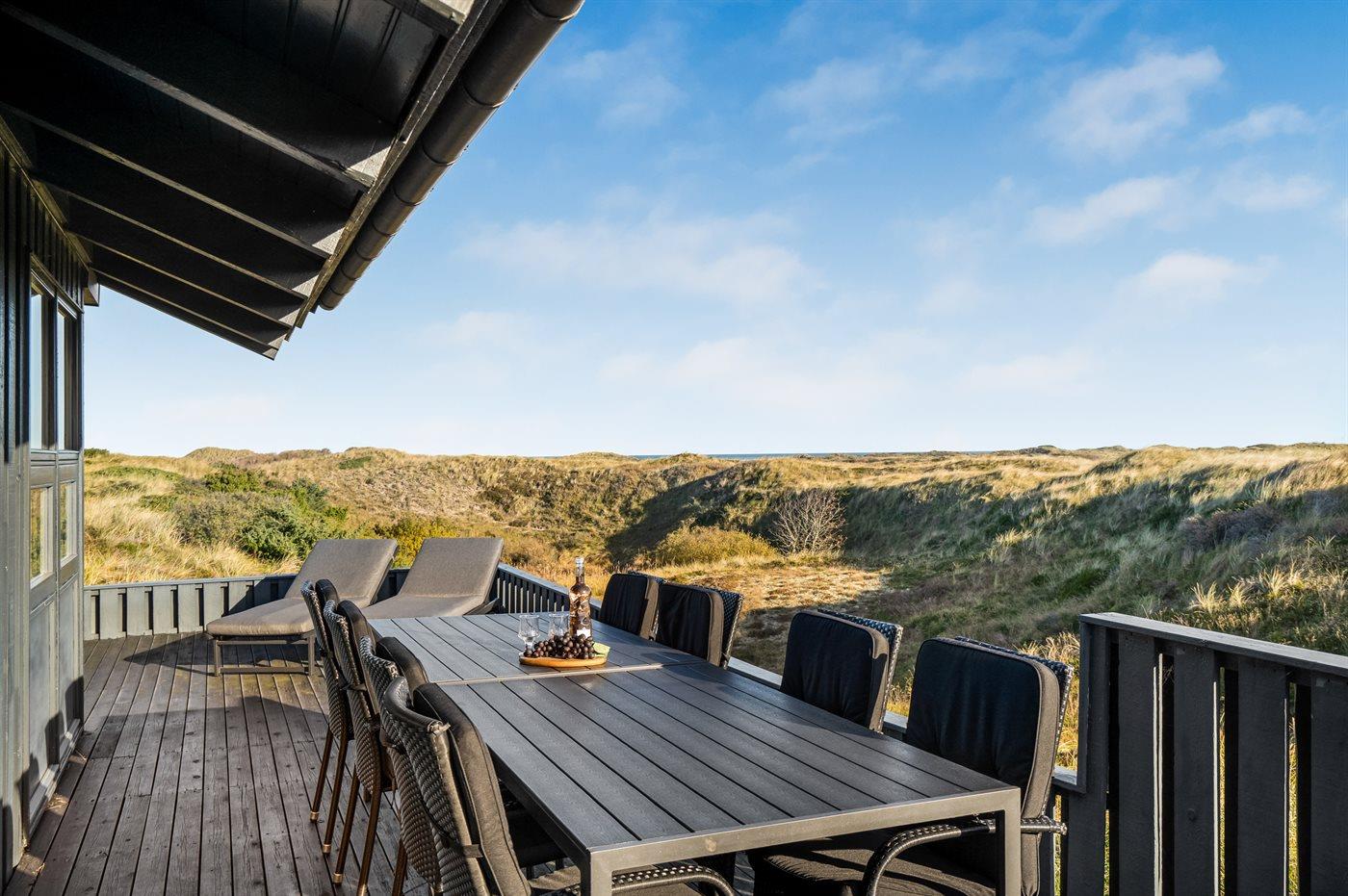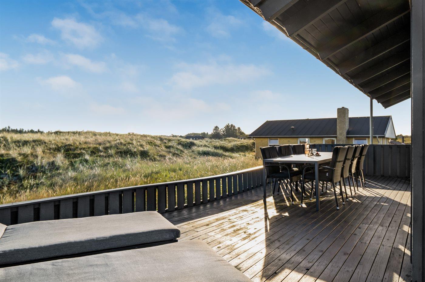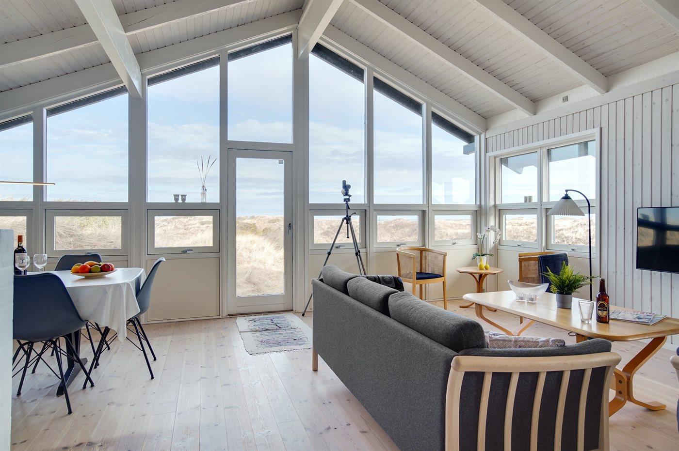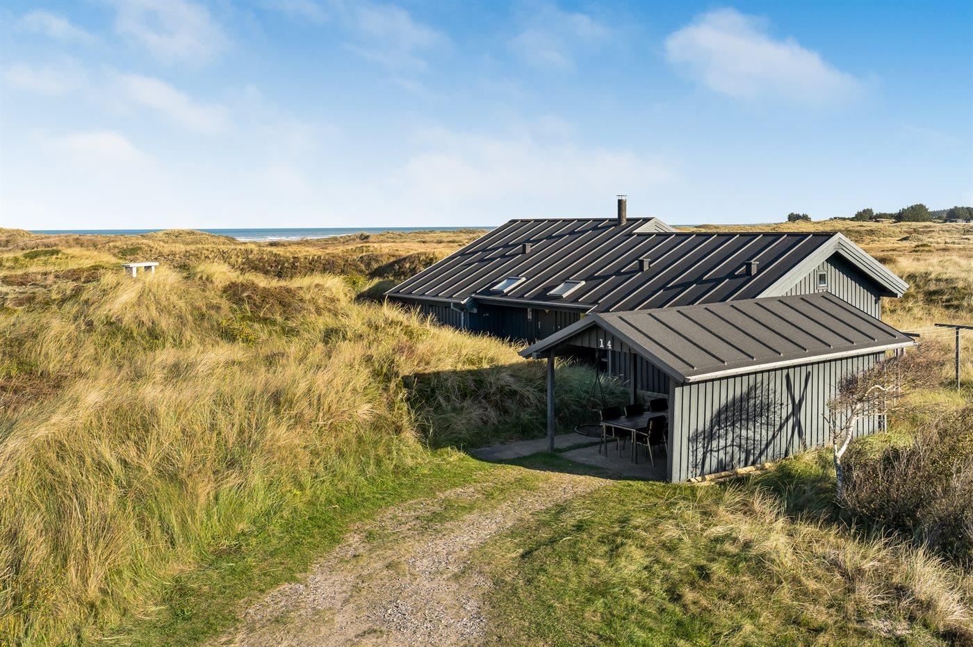 Nicht weit vom gemütlichen Ferienort Tversted entfernt finden Sie dieses schöne und gut gelegene Ferienhaus - mit Meeresblick sowohl vom Haus als auch vom Grundstück. Das Haus liegt in erster Reihe an der herrlichen Dünenlandschaft, die sich bis hinunter an den schönen Badestrand erstreckt, der fußläufig durch das Wegenetz erreichbar ist. Das Haus ist geräumig und gut eingerichtet – es steht u. a. ein offenes Obergeschoss mit Fernseher und 3 zusätzlichen Schlafplätzen zur Verfügung.