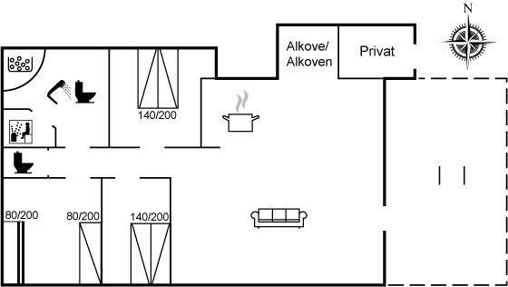 In der Ferienunterkunft gibt es einen Fernseher. Mindestens 4 dänische Fernsehsender. Mindestens 4 deutsche Fernsehsender. Es steht kabellose Internetverbindung zur Verfügung.