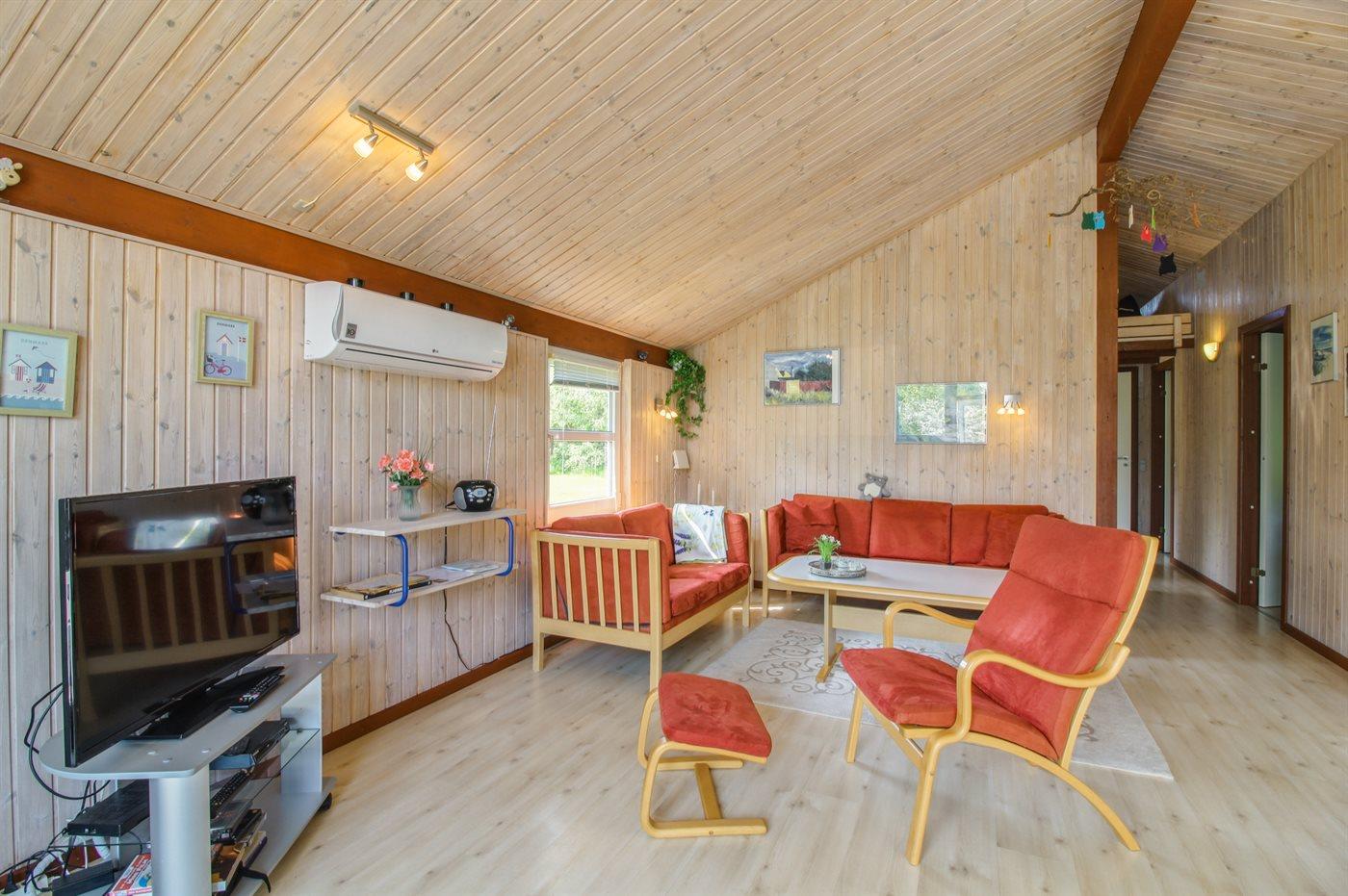 Ein gut gelegenes Ferienhaus in einem beliebten Feriengebiet – in naturschöner Umgebung mit Seen und einem schönen Badestrand. Das Gebiet lädt zu lange Spaziergänge, sowohl mit als auch ohne den Familienhund, ein.