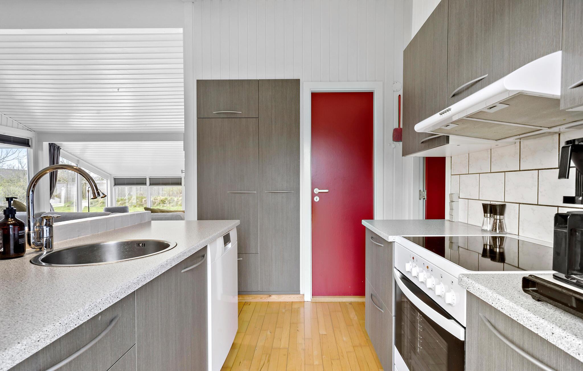 Willkommen in Ihrem Ferienhaus in Tversted im Norden Jütlands. Freuen Sie sich auf den bevorstehenden Urlaubstag an der Tannis Bucht, während Sie ein leckeres Familienfrühstück zubereiten. Am Esstisch neben der offenen Küche kommt bestimmt auch schon die eine oder andere Idee für die Aktivitäten des Tages auf den Tisch. Machen Sie es sich aber auch in dem gemütlichen Wohnzimmer mit Ausblick auf den Garten gemütlich. Hier können Sie Ihren Lieblingsfilm schauen oder mit Ihren Kindern Bilder malen oder Spiele spielen. Schreiten Sie hinaus auf die angenehme, geräumige Holzterasse, die teilweise überdacht ist. Hier können Sie grillen oder Ihren Kindern beim Spielen auf dem Rasen zuschauen. Spielen Sie auch alle gemeinsam eine Runde Kubb, das auch Wikingerspiel genannt wird.