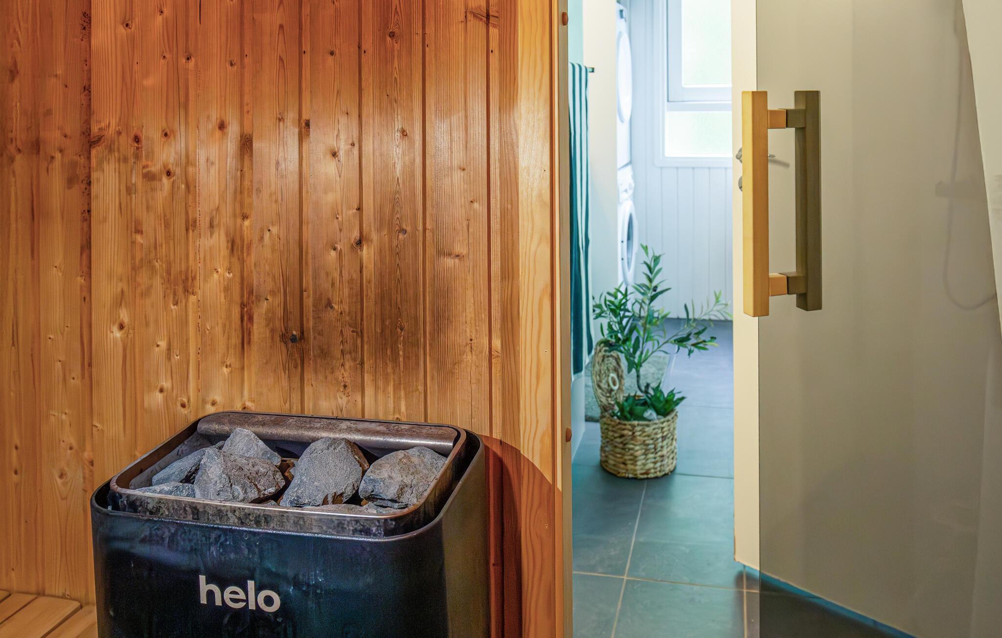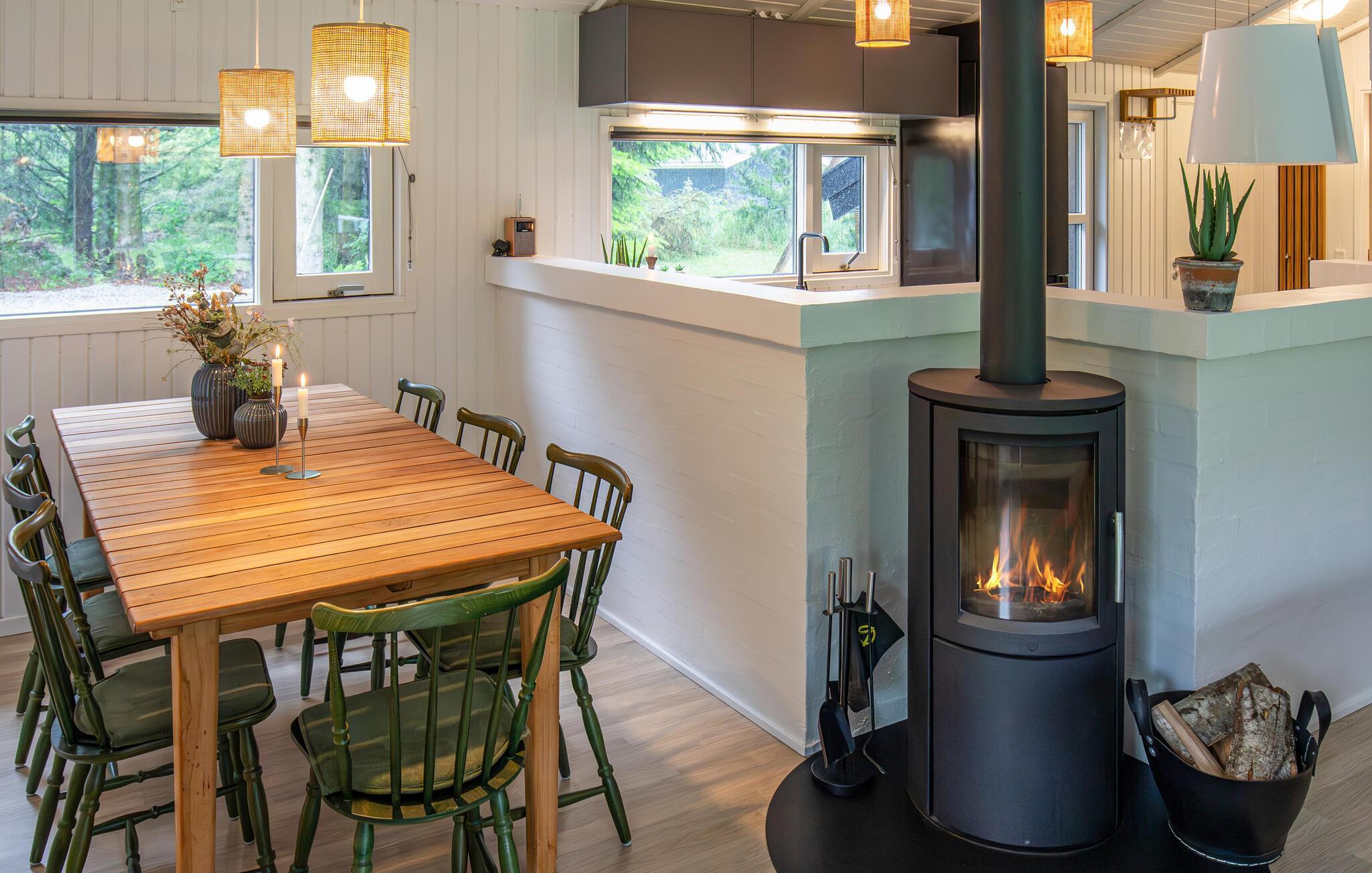Das winterfeste Haus ist das ganze Jahr über ein wunderbarer Urlaubsort. Im Sommer können Sie sich auf die teilweise überdachte Terrasse zurückziehen und die Mahlzeiten im Freien genießen. Meer und Sandstrand sind nur 1,5 km entfernt und laden zum Schwimmen, Sonnenbaden und Genießen ein. In den kühleren Jahreszeiten können Sie sich in der Sauna erholen. Oder Sie können sich nach einem schönen, abendlichen Spaziergang in der Gegend am Kaminofen bei einer Tasse Tee wärmen.
