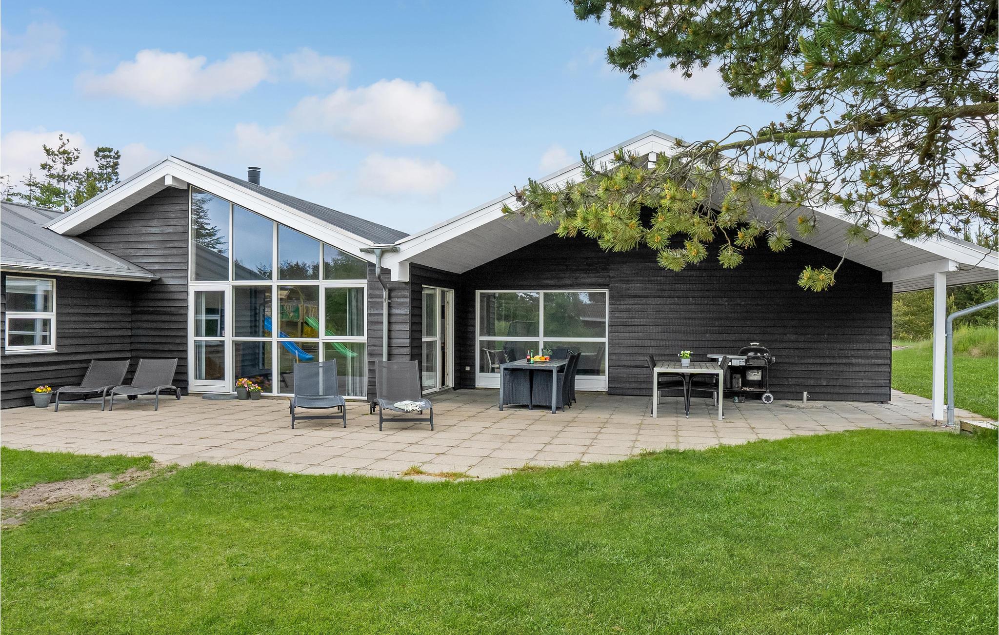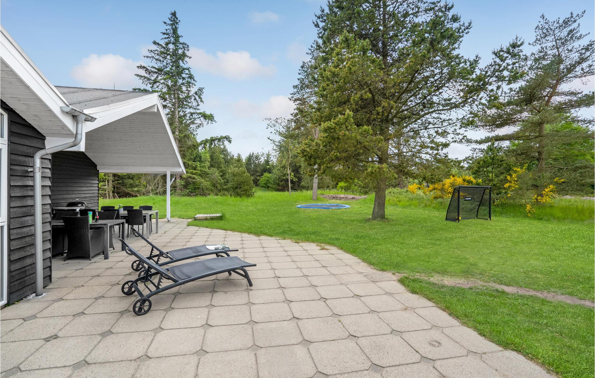 Im Garten ist ein Rasen für Ballspiele, Badminton und andere Aktivitäten vorhanden. Hier können Sie sich ebenso auf mehreren Terrassen dem Urlaubsleben hingeben, genießen Sie besonders die sonnigen, windstillen Ecken. Zwei Wärmepumpen sorgen für eine umweltgerechte, stromsparende Heizung und Erwärmung des Pools. Tversted besitzt einen breiten, weißen Sandstrand. Die Seen von Tversted laden ebenso zu schönen Spaziergängen ein.