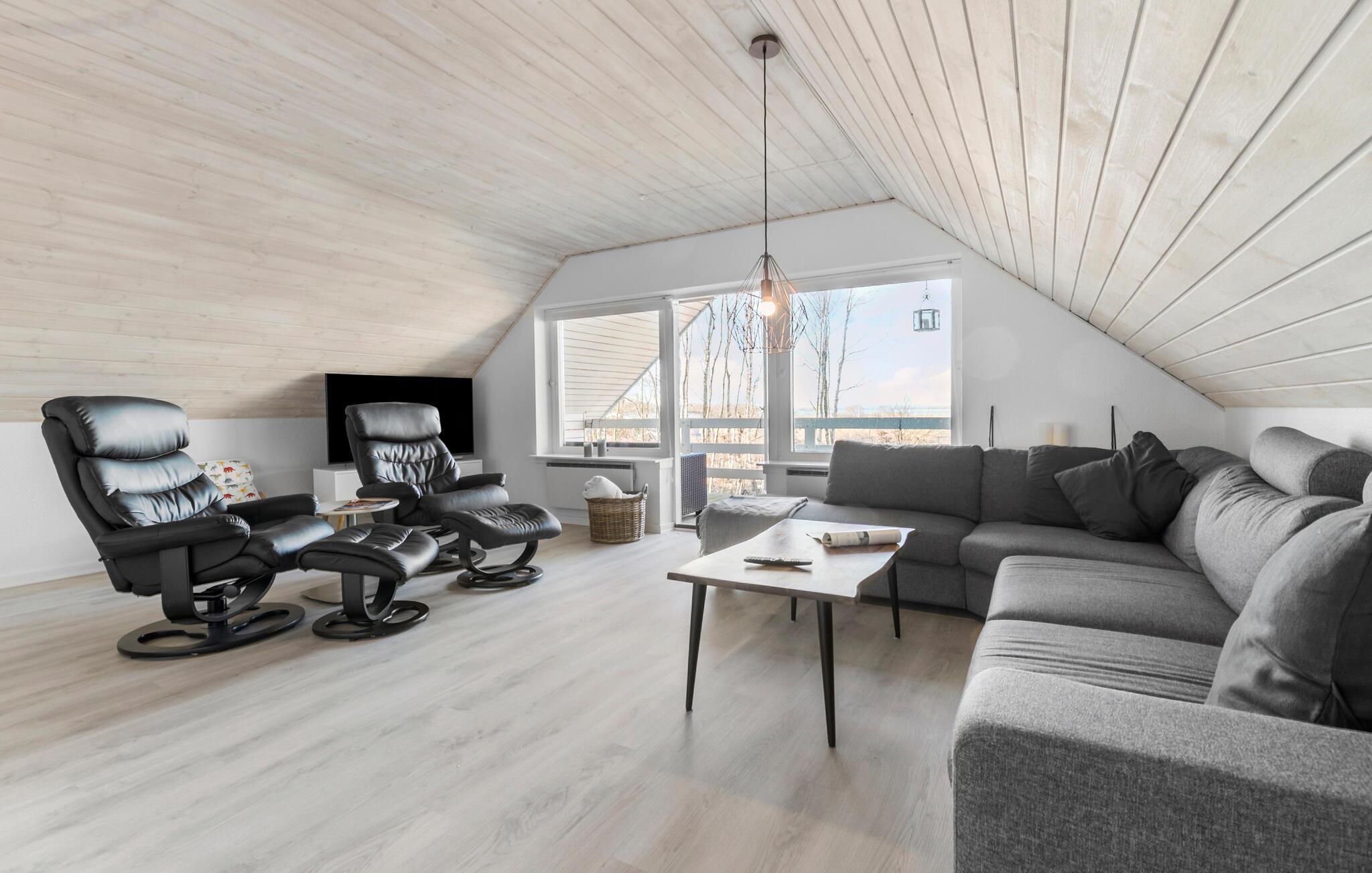 Willkommen in diesem komfortablen Ferienhaus in idyllischer Lage. Lassen Sie sich vom hellen, geschmackvollen Interieur überraschen, in dem sich junge Gäste ebenso wohlfühlen wie die Großen. Schwingen Sie in der modernen Küche gemeinsam den Kochlöffel und zelebrieren Sie Ihre Mahlzeiten an der langen Esstafel. Kuscheln Sie sich abends auf die Sofalandschaft, streamen Sie einen Film oder legen Sie die Beine für entspannte Lesestunden auf den bequemen Sesseln hoch.