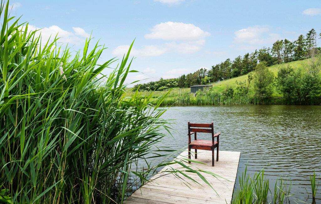 Erleben Sie Entspannung pur in diesem gemütlichen Ferienhaus in Ugerløse. Die angenehm eingerichteten Innenräume bieten Ihnen eine lichtdurchflutete Atmosphäre, die Sie sofort willkommen heißt. Der großzügige Wohnbereich öffnet sich zur Terrasse, die einen herrlichen Blick auf den See bietet. Genießen Sie Ihre Entspannung beim Baden im Finnischen Holzbad oder Schwitzen in der Fasssaune. Direkt am Seeufer gelangen Sie über einen Steg ans Wasser – perfekt für Angelstunden oder ruhige Stunden mit Blick auf die Natur. Hier genießen Sie die Ruhe und Schönheit der Umgebung in vollen Zügen.