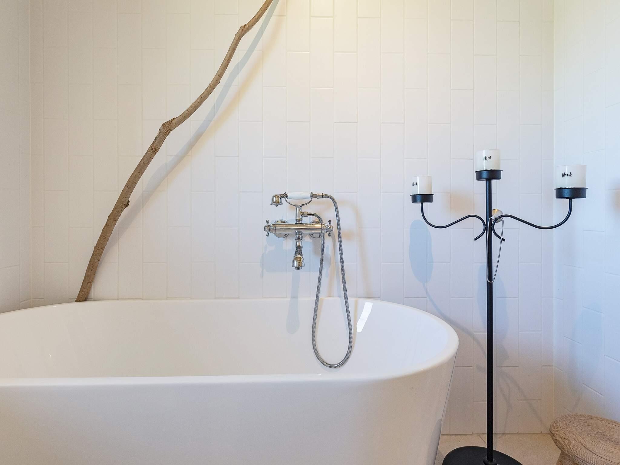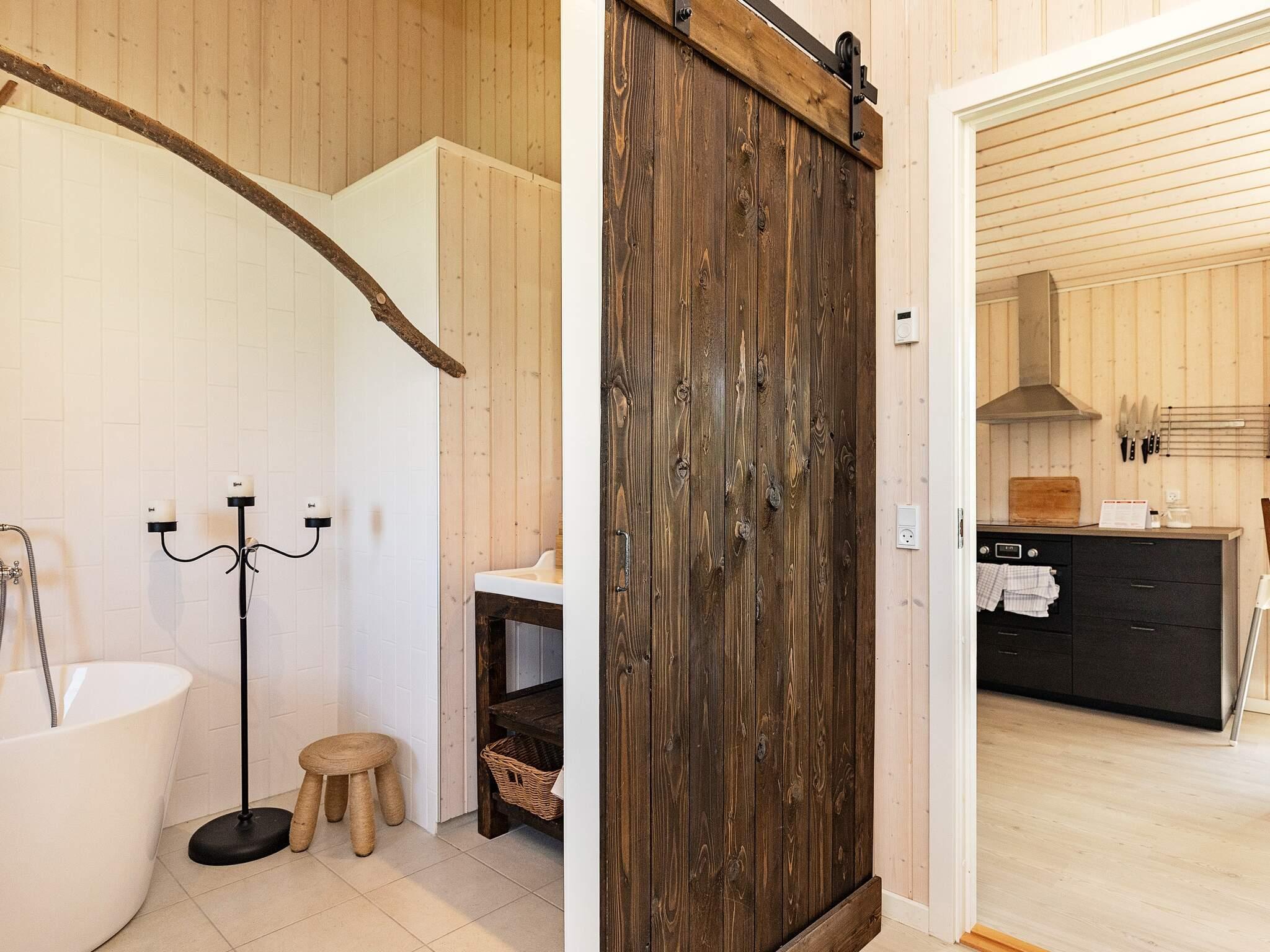 Im Ferienhaus auch separate Küche sowie ein Schlafzimmer mit Doppelbett und eigenem Bad im Anschluss daran. Von der Küche gelangt man in ein sehr helles Wohnzimmer, das wiederum Zugang zu einem weiteren schönen Duschbad sowie zu einem zweiten Zimmer mit Doppelbett und einem gemütlichen Kinderzimmer mit Etagenbett mit zwei Kojen bietet.