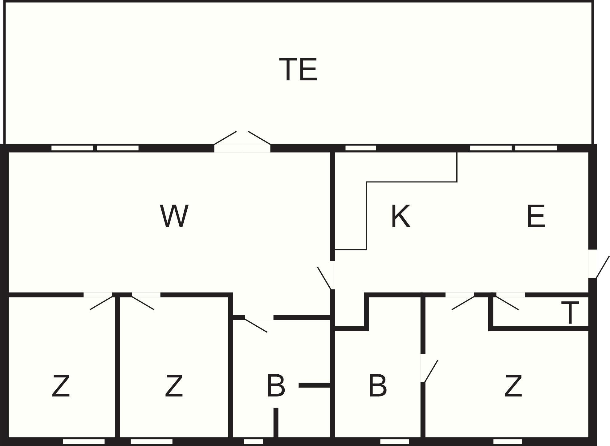 Das Haus wurde mit der Möglichkeit für zwei unabhängige Wohnungen erbaut, daher gibt es eine Abtrennung zwischen Küche und Wohnzimmer und es gibt zwei separate Eingänge zum Haus.