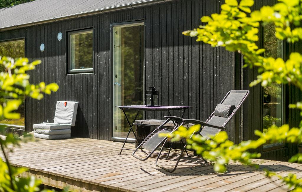 Modernes, gemütliches Ferienhaus am Ulvshale Strand mit idyllischem Waldblick und vielfältigen Freizeitmöglichkeiten.