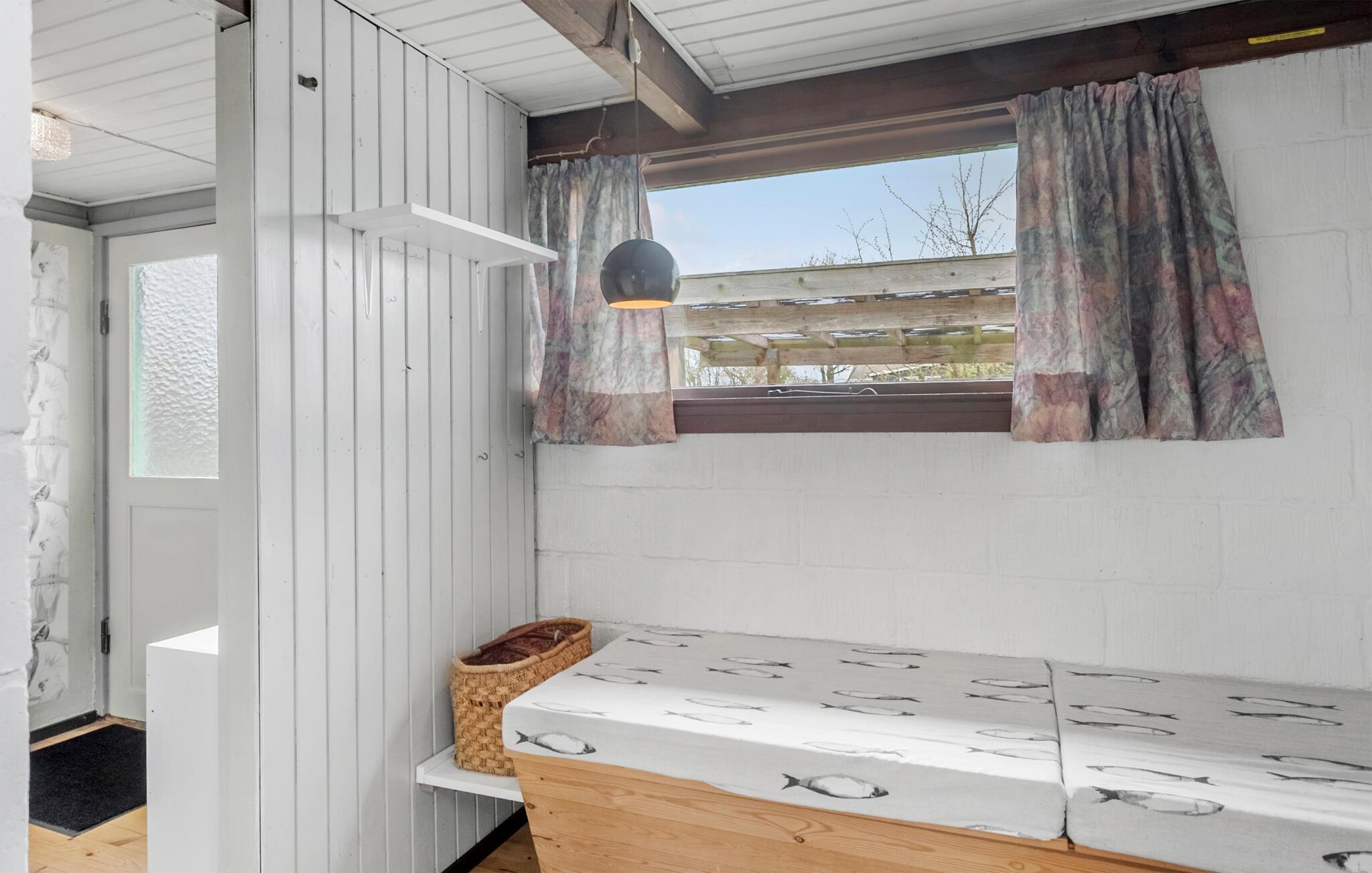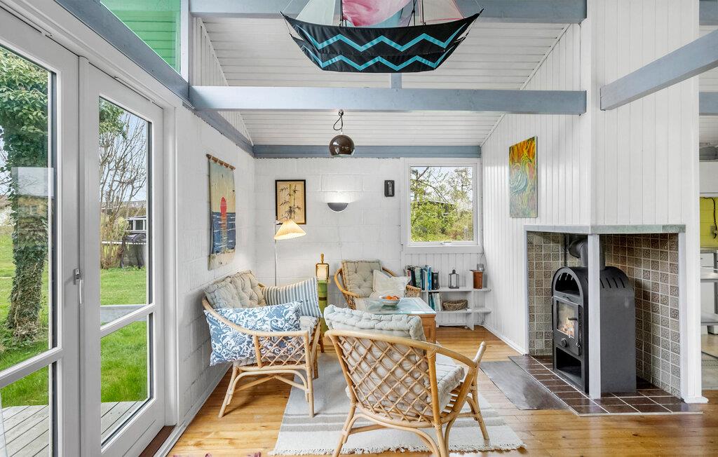 Ihr funktional gestaltetes Ferienhaus bietet eine solide Grundlage für entspannte Tage in naturnaher Umgebung. Genießen Sie die Nähe zur Ostsee und freuen Sie sich auf den hellen Wohnbereich Ihres Ferienhauses, der mit zweckmäßigen Möbeln ausgestattet ist. Nutzen Sie die Sitzecke für eine Tasse Tee oder ein Gesellschaftsspiel und bereiten Sie Ihre Mahlzeiten in der offenen Küche mit Blick in den Garten zu. Der zentrale Holzofen sorgt an kühleren Tagen für angenehme Wärme. Durch die großen Fenster fällt viel Licht in die Räume, was die Atmosphäre freundlich und offen wirken lässt.