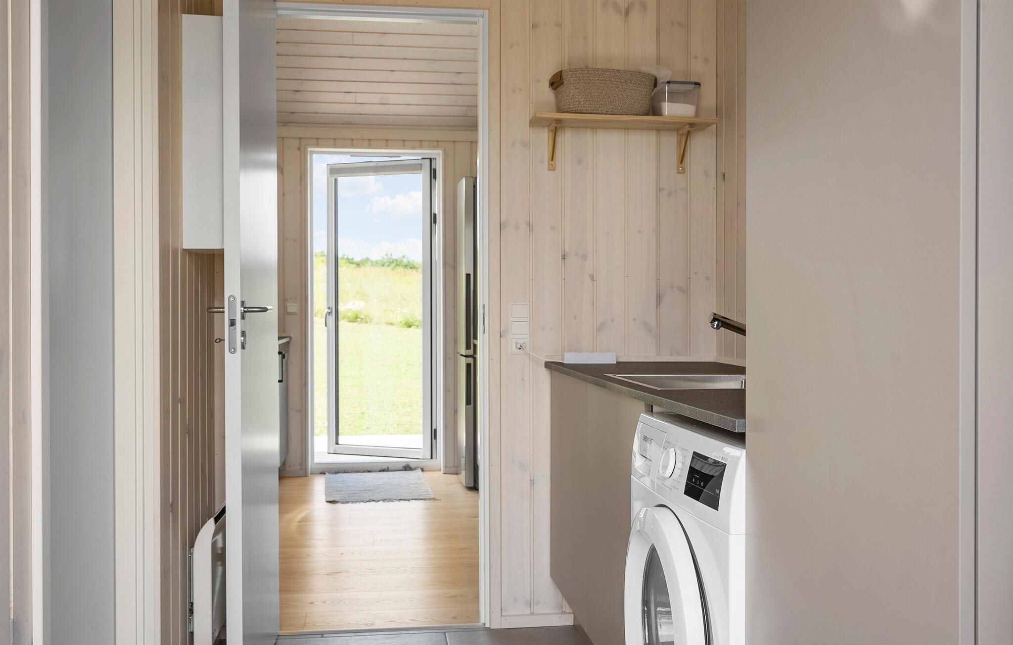 In diesem landschaftlich schön gelegenen Haus empfängt Sie helles Tagelicht und eine warme Holzvertäfelung. Hier fällt es leicht, zur Ruhe zu kommen und neue Kraft zu schöpfen. Machen Sie es sich auf einem bequemen Sofa mit einer Tasse Tee gemütlich und entzünden Sie an kühleren Tagen den Kaminofen. In der modernen Küche bereiten Sie frische Mahlzeiten zu, die sich wunderbar bei einem Glas Wein genießen lassen.