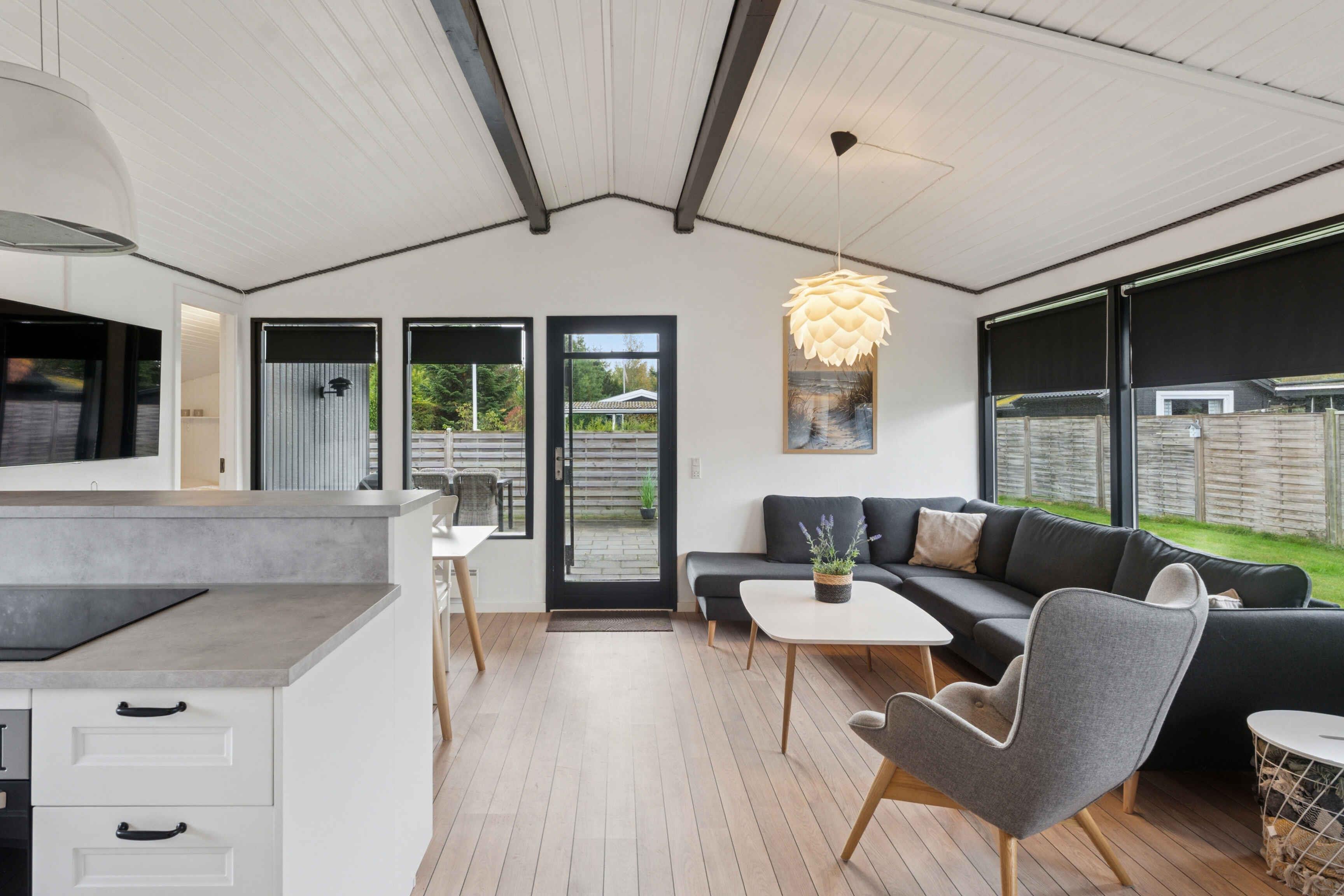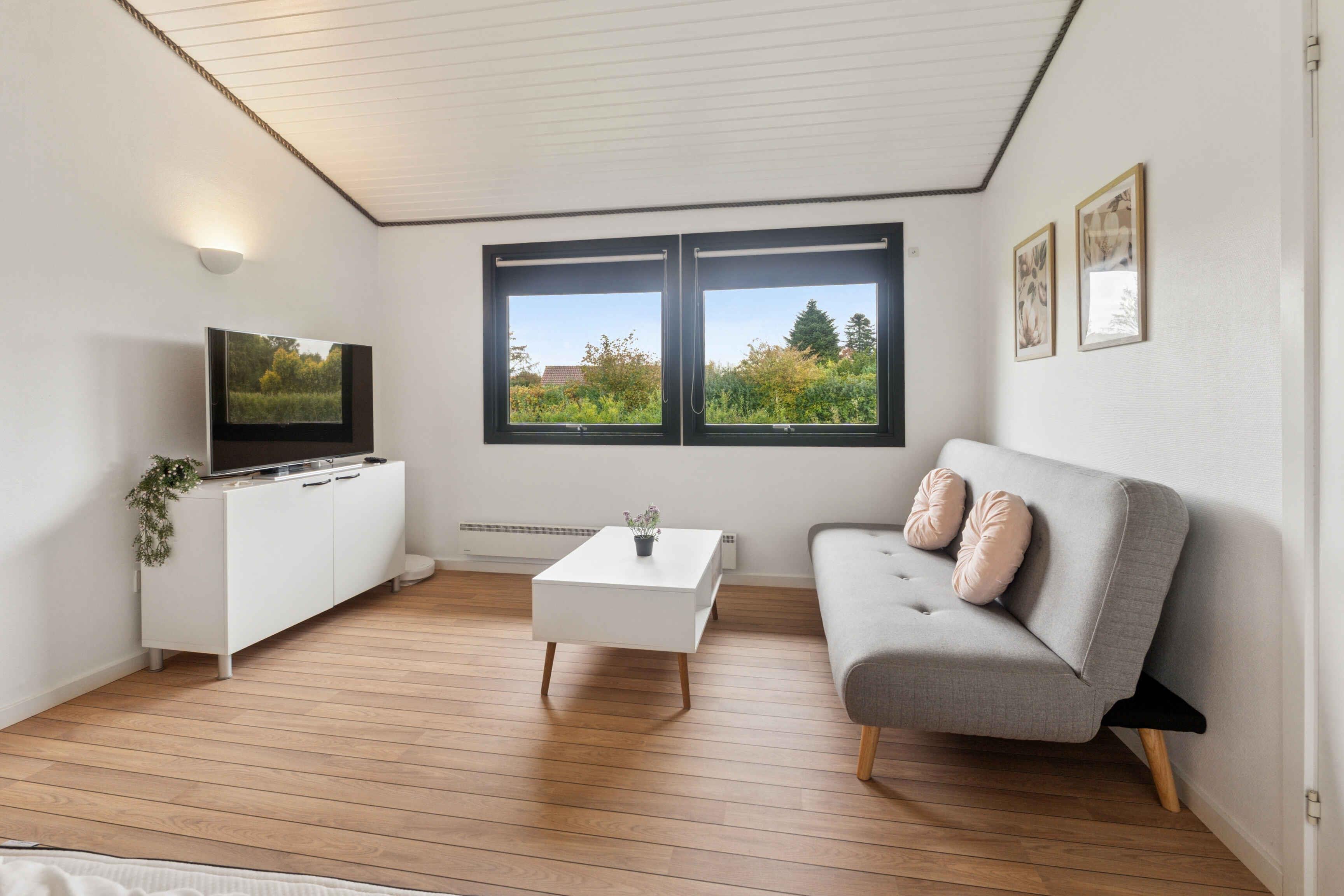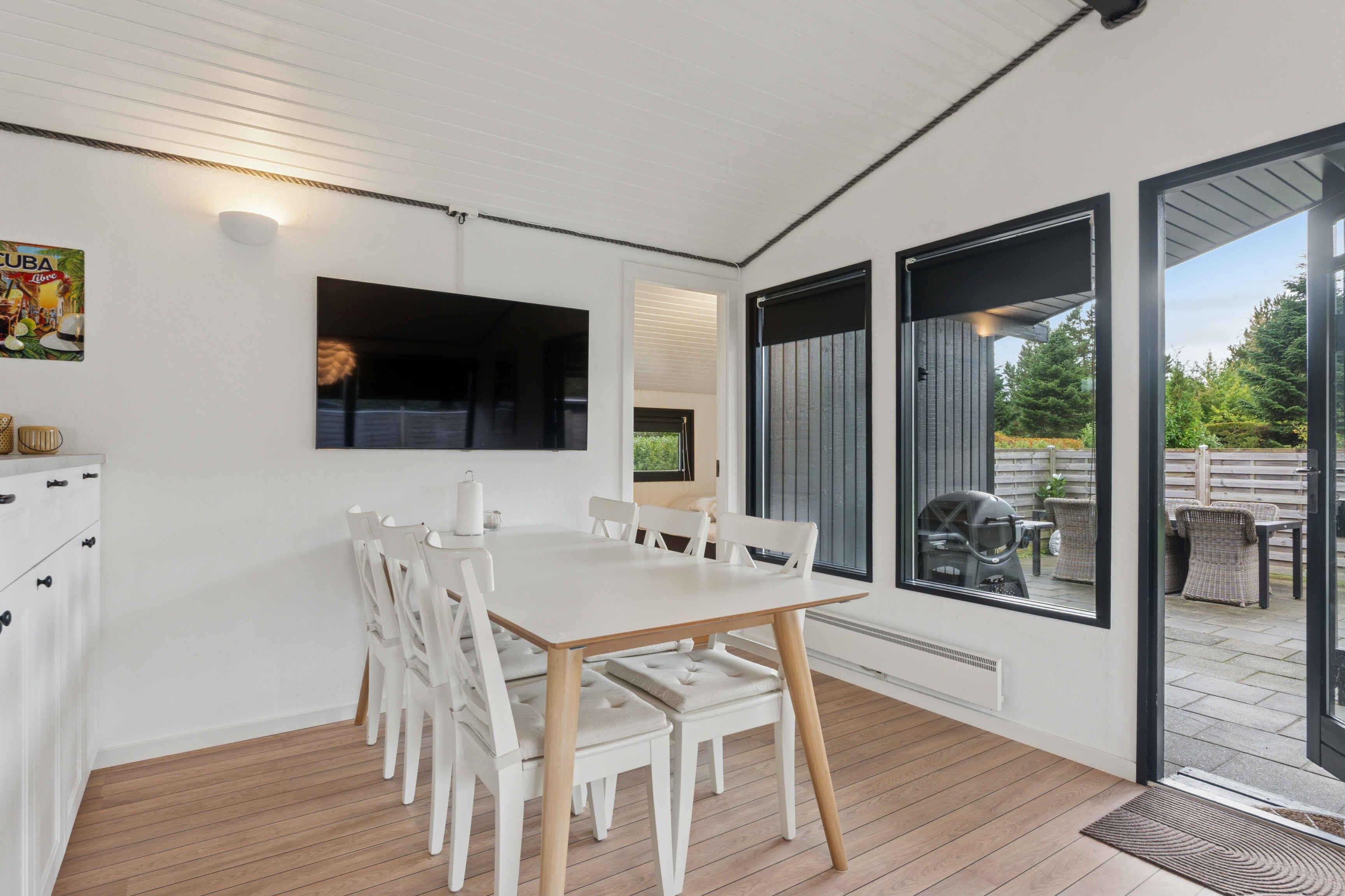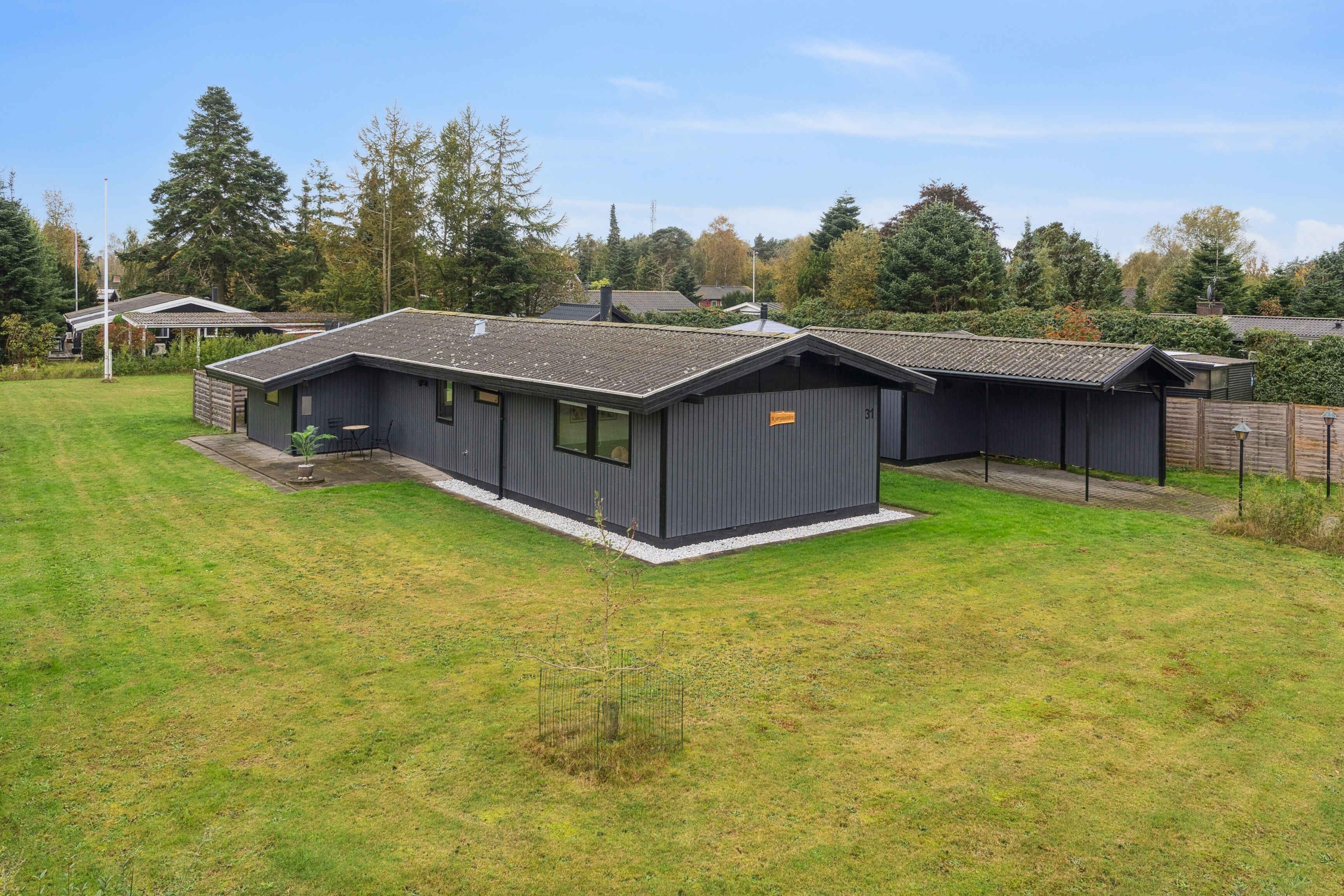 Dieses kürzlich renovierte Ferienhaus mit 77 m² ist für einen erholsamen Urlaub mit bis zu sechs Personen eingerichtet. Es bietet einen funktionalen Rahmen mit Platz für gemeinsames Beisammensein ebenso wie für Ruhe, ganz gleich ob der Urlaub aktiv oder entspannt gestaltet wird. Das Haus verfügt über drei Schlafzimmer mit insgesamt sechs Schlafplätzen. Im größten Schlafzimmer befindet sich ein angrenzender Spielbereich, wodurch das Haus besonders familienfreundlich ist. Die Kinder können spielen, während die Erwachsenen in der Nähe entspannen. Küche und Wohnbereich sind offen gestaltet und sorgen für einen angenehmen Ablauf im Alltag. Ein Kaminofen sorgt an kühleren Abenden für Wärme, während eine Wärmepumpe ganzjährig ein angenehmes Raumklima gewährleistet. Internet steht für Streaming oder Homeoffice zur Verfügung. Das Ferienhaus liegt in ruhiger, grüner Umgebung, in der die Natur Teil des Urlaubserlebnisses ist. Das Grundstück lädt zu Aktivitäten im Freien, Spiel und Entspannung ein, und die Umgebung ist geprägt von Ruhe und Weite. Hier fällt das Abschalten leicht. Die Region bietet attraktive Erlebnisse für Kinder und Erwachsene. Der kinderfreundliche Strand ist etwa 1.000 Meter entfernt und bequem zu Fuß oder mit dem Fahrrad erreichbar. Flaches Wasser und viel Platz ermöglichen lange Tage mit Baden, Sandburgenbauen und Spaziergängen entlang der Küste. Die Umgebung ist bekannt für ihre abwechslungsreiche Natur mit Wäldern, offenen Landschaften und Wegen zum Radfahren und Wandern. Gleichzeitig befinden sich lokale Attraktionen, Restaurants und Ausflugsziele in kurzer Entfernung, ohne lange Fahrzeiten. Dieses Ferienhaus ist eine ideale Wahl für alle, die eine gut ausgestattete Unterkunft in naturnaher Lage suchen, nahe Strand und Erlebnissen. Der perfekte Rahmen für einen Urlaub voller Ruhe, Nähe und schöner Erinnerungen. Bei Aufenthalten von weniger als einer Woche kontaktieren Sie uns bitte gerne.