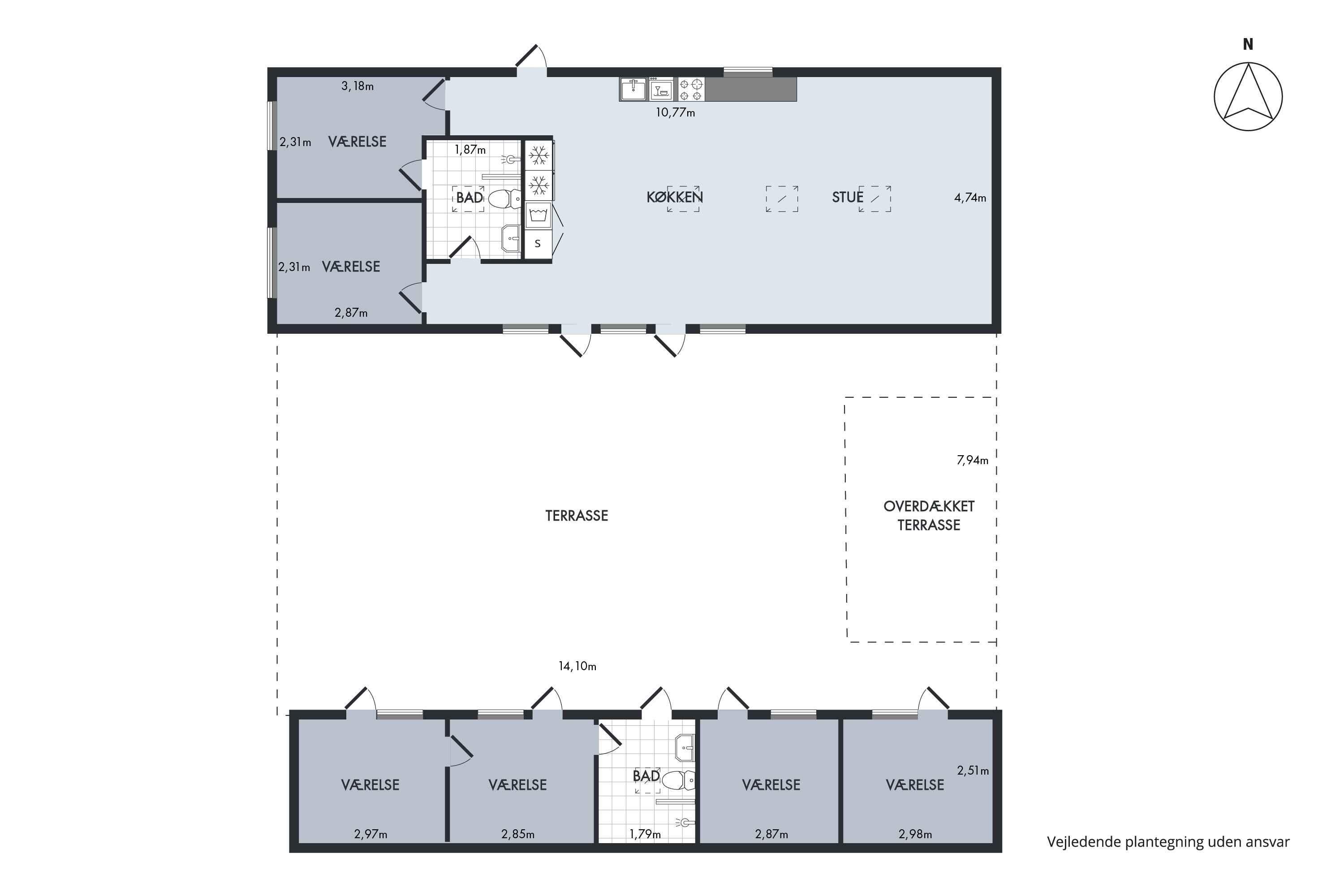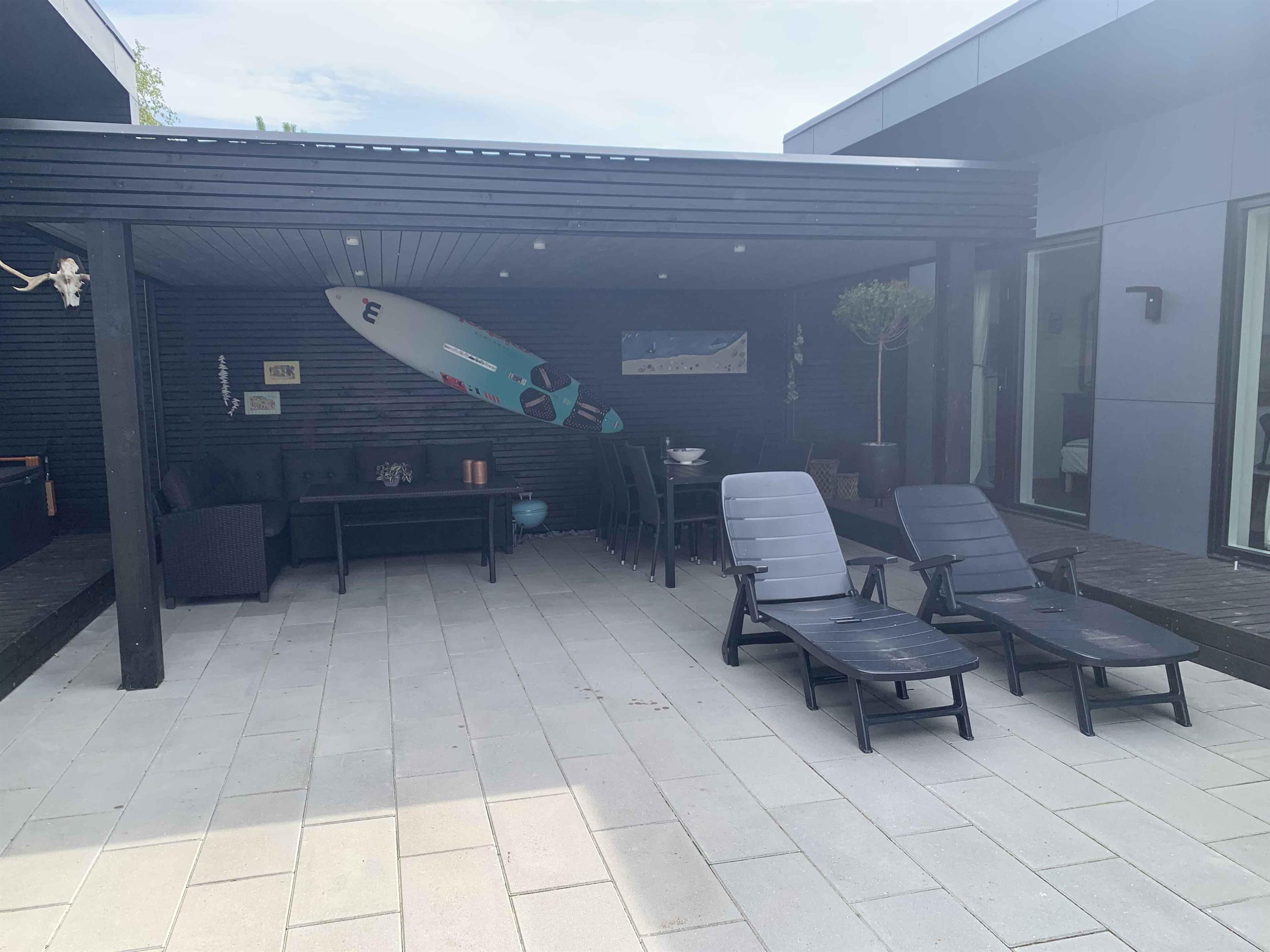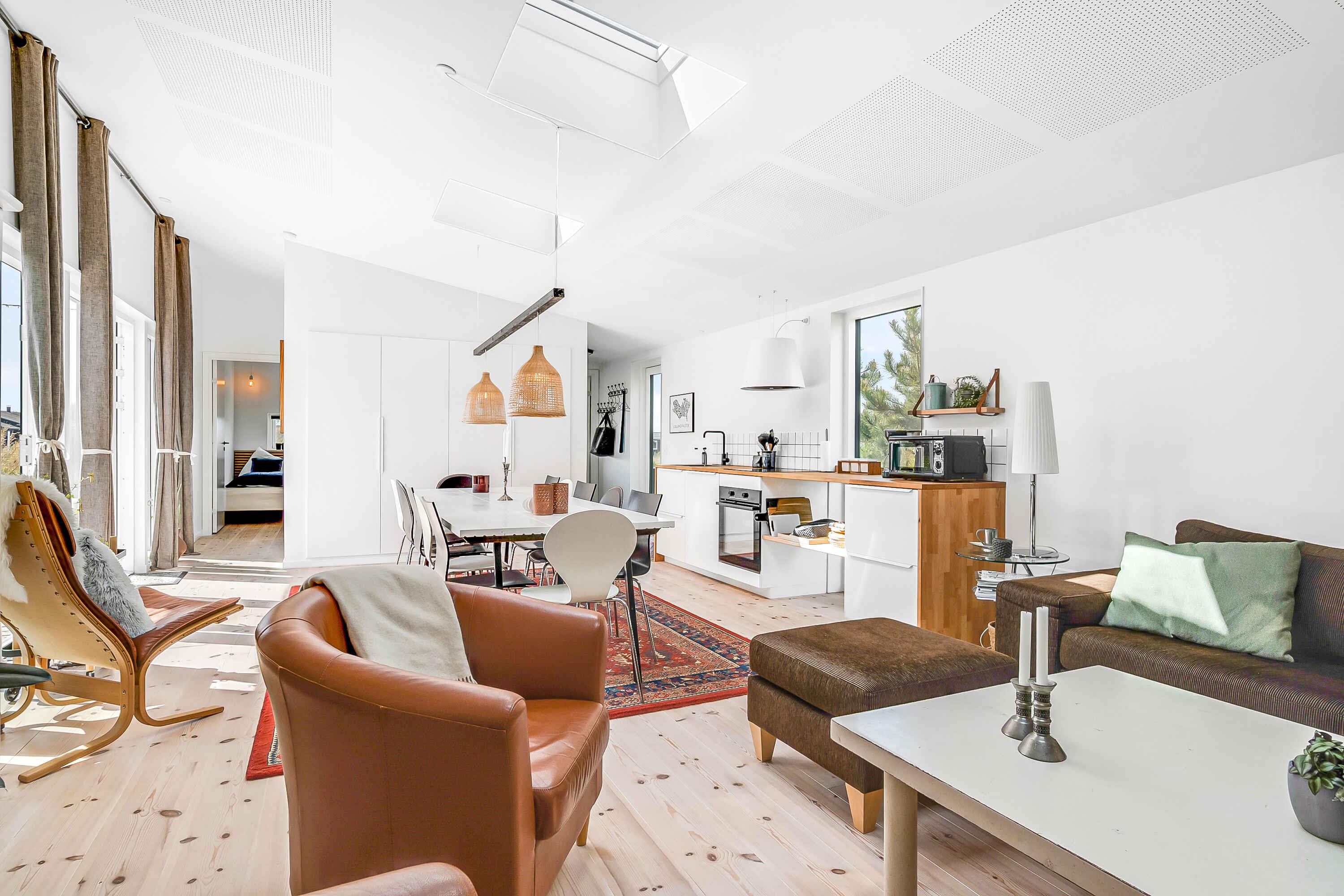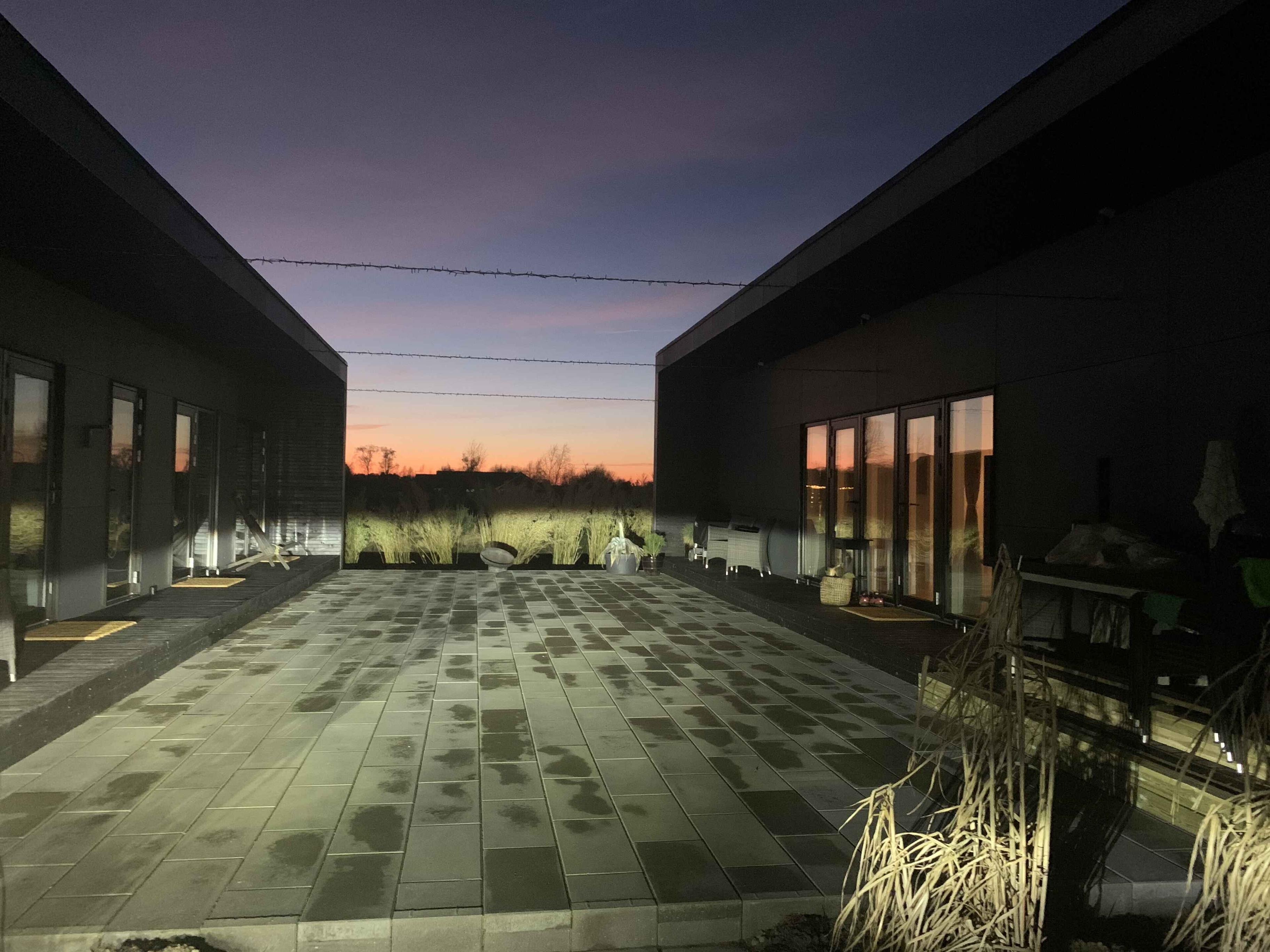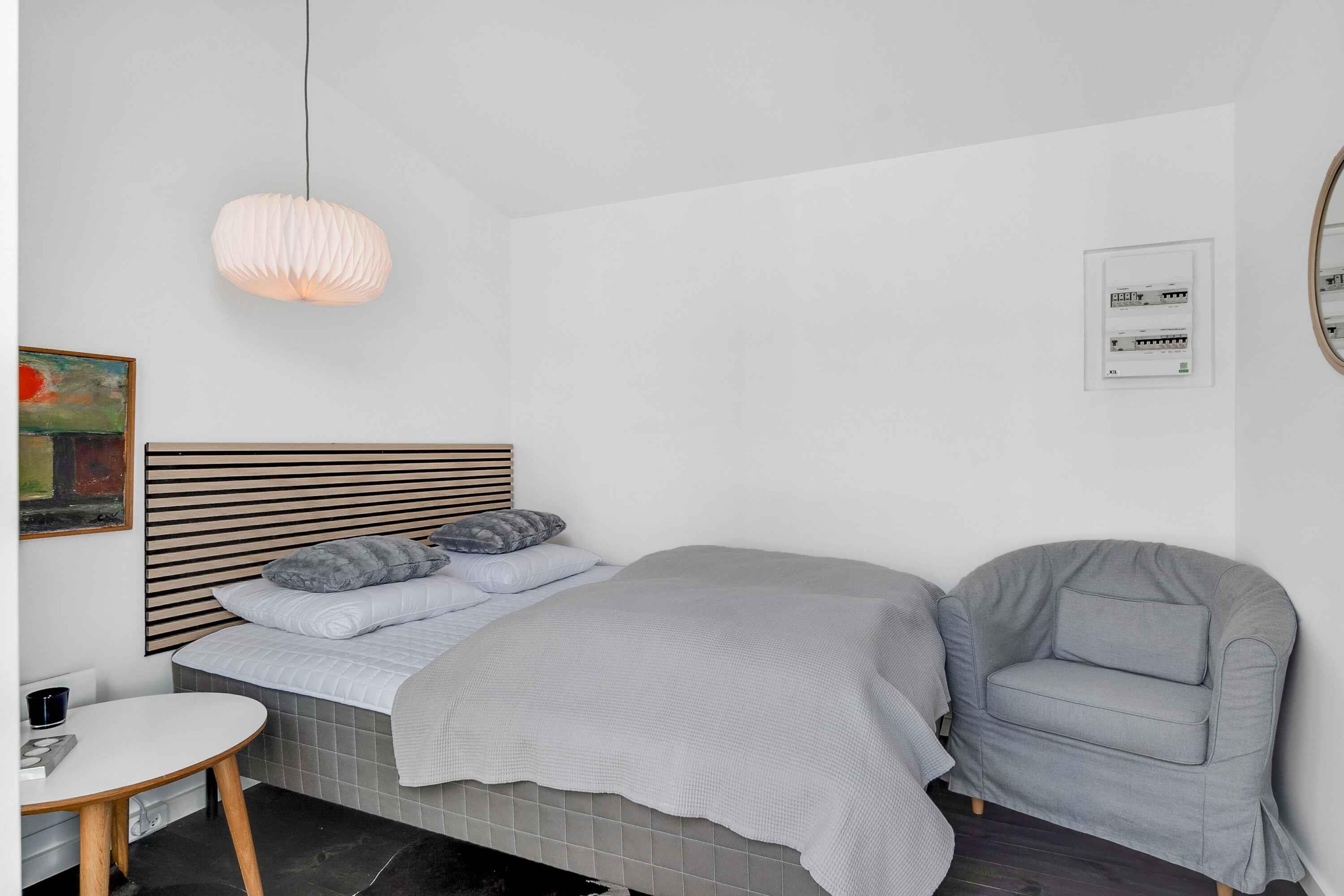 Genießen Sie Ihren Urlaub in diesem Ferienhaus der Sonderklasse, gebaut aus tollen Materialien und in zeitlosem Design. Das Haus wurde 2022 erbaut und ist in 2 separate Gebäude unterteilt, die sich einen Atriumhof teilen, sodass Sie bei Bedarf einen Teil abschließen können. An einem Ende des 100 m² großen Atriumhofs befindet sich ein schöner Bereich mit einer ca. 20 m² großen überdachten Terrasse, wo Sie Schatten und Schutz genießen können. Das Atrium kann vollständig verschlossen werden. Das Ferienhaus verfügt über insgesamt 118m2, die sich auf das 75m2 große Haupthaus und das dazugehörige Gebäude von 43m2 verteilen. Das Haupthaus enthält eine große und schöne Wohnküche mit Küche, Wohnzimmer und Essbereich, wo Platz für die ganze Familie oder Freunde ist. Hier erwartet Sie ein Sofabereich mit einer großen Sofagruppe, Fernseher und Holzofen, wo die Gemütlichkeit in den Abendstunden stattfinden kann. Außerdem gibt es einen schönen Esstisch für die festlichen Mahlzeiten sowie eine helle und funktionale Küche. In diesem Raum gibt es Dachfenster, die bei der guten Deckenhöhe für fantastisches Tageslicht sorgen. Außerdem befindet sich eines der beiden Badezimmer ebenfalls im Haupthaus. Dieses Badezimmer verfügt über eine separate Dusche mit schönen Fliesen, Fußbodenheizung und ein Dachfenster mit automatischer Öffnungs-/Schließfunktion. Im Haupthaus befinden sich 2 Schlafzimmer mit 4 Schlafplätzen. Das zweite Gebäude verfügt über 4 Schlafzimmer, jedes mit eigenem Eingang. Sie alle enthalten 2 Schlafplätze und die Möglichkeit der Lagerung. In diesem Teil gibt es auch ein Badezimmer mit den gleichen Funktionen wie im Haupthaus. Insgesamt gibt es 6 Schlafzimmer mit 4 Doppelbetten und 4 Einzelbetten. Insgesamt 12 Personen. Vom Haus aus ist es nur ein kurzer Spaziergang zum Wasser, das 900 m vom Haus entfernt liegt, während es nur 700 m zum Einkaufen sind. Es besteht Zugang zu einem schönen Pétanque-Platz. Seit mehr als 100 Jahren ist Marielyst die beliebteste Küstenstadt an der dänischen Ostküste und hat eine südliche Atmosphäre mit Sitzgelegenheiten im Freien in Cafés und Restaurants. Im Sommer ist der Platz voller lokaler Kunsthandwerker mit Gemälden und Keramik, die eine bezaubernde Sommeratmosphäre schaffen. Marielyst bietet eine große Auswahl an Geschäften mit Kleidung, Wein und Sonderwaren sowie viele Aktivitäten wie Golf, Bowling, Minigolf, Segway, Go-Kart und Paintball. Das Ferienhaus ist auch nicht weit von Nykøbing Falster entfernt, einer stimmungsvollen Stadt mit einer wunderschönen Lage am Guldborgsund. Die Stadt hat eine schöne Fußgängerzone mit vielen Geschäften und Cafés. Hier finden Sie auch das Middelaldercenter, den Guldborgsund Zoo und mehrere Museen. Wichtige Informationen: Das Ferienhaus wird nicht für größere Feiern vermietet und es ist nicht gestattet, hier eine Party zu veranstalten (kann beim Eigentümer erfragt werden). Haustiere dürfen nicht in den Möbeln oder Betten sein und der Hundekot MUSS entfernt werden. Achtung: Wird nicht für gewerbliche Nutzung vermietet.
