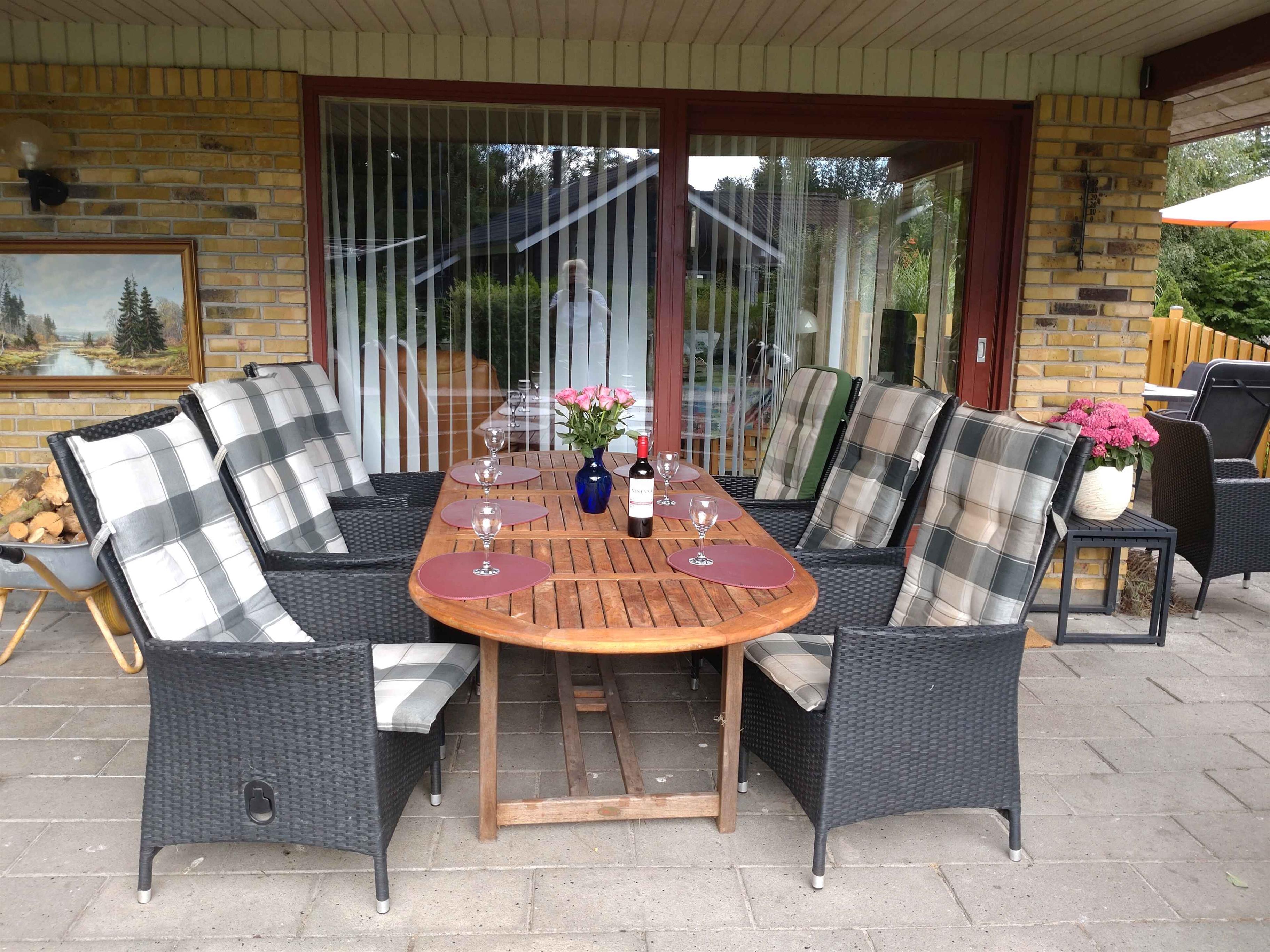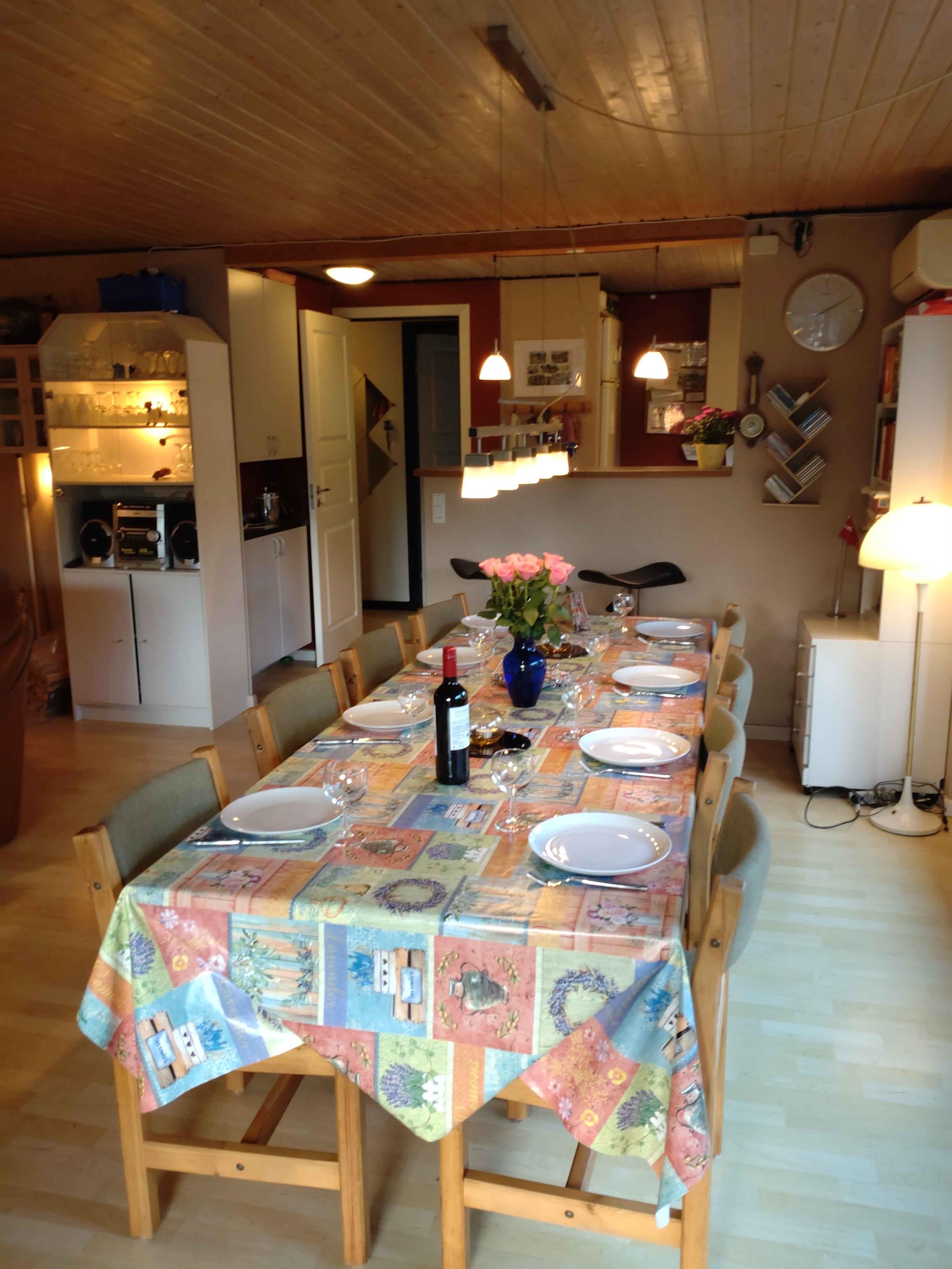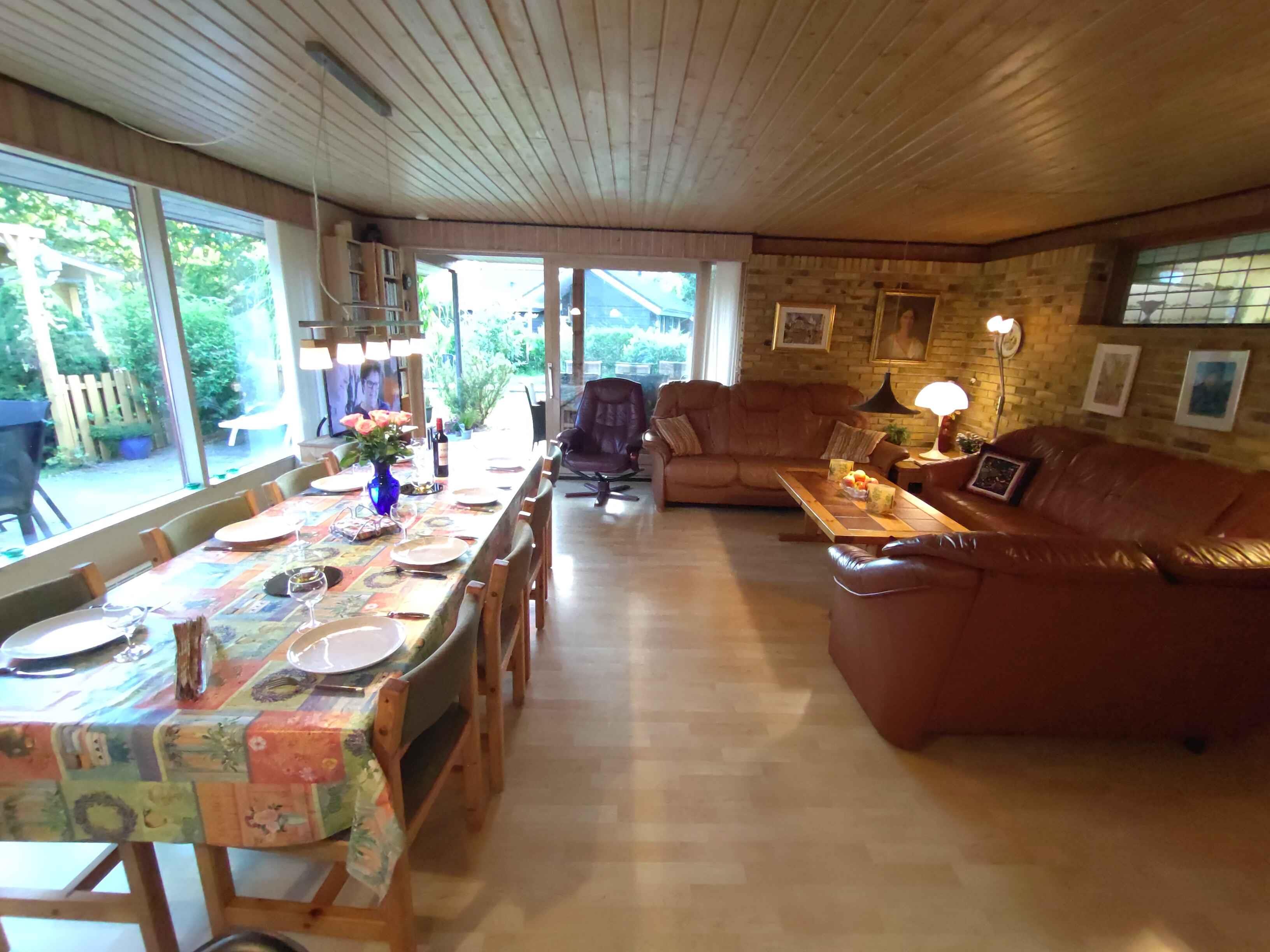 Gut eingerichtetes, gemütliches Ferienhaus mit Sauna, gelegen in ruhiger Umgebung nahe Marielyst. Das Haus ist für mehrere Familien, einschließlich Familien mit Kindern, geeignet, da der Platz auf 3 Abteilungen verteilt ist. Haupthaus mit Wohnzimmer, 2 Schlafzimmern und Badezimmer mit Toilette und Fußbodenheizung. Nebengebäude, gut isoliert, ein Schlafzimmer, Badezimmer mit Toilette, Fußbodenheizung und Sauna. Blockhütte mit einem geräumigen Zimmer von ca. 10 m2. Die Blockhütte besteht aus dicken Balken, ist aber nicht isoliert. Es gibt einen mobilen Ölradiator und elektrische Heizdecken in den Betten, die die Betten und Decken vor dem Schlafengehen aufwärmen können. Normalerweise ist das kein Problem, aber in der Nebensaison kann es etwas kühl sein, daher diese Wärmequellen (z.B. zu Ostern). In jedem dieser Orte kann man ungestört voneinander wohnen. Die 8 Betten sind Boxspringmatratzen und können je nach Wunsch sowohl Einzel- als auch Doppelbetten sein. Der 9. Schlafplatz ist ein Etagenbett und hat auch eine Federkernmatratze. DAS WOHNZIMMER im Haupthaus ist geräumig und bietet Platz für 9 Personen, sowohl am Esstisch als auch in der Sofagruppe. Im Wohnzimmer gibt es eine Wärmepumpe, die einfach und günstig heizt. Zusätzlich gibt es einen gemütlichen Holzofen, und die Mieter haben GRATIS ZUGANG zu Brennholz nach Bedarf. Der Fernseher im Wohnzimmer ist auf Rädern und kann zum Esstisch, zur Sofagruppe oder zur Terrasse gedreht werden. DIE KÜCHE ist offen und geräumig mit dem Wohnzimmer verbunden, so dass jeder an dem, was passiert, teilnehmen kann. Sie ist gut eingerichtet und gut ausgestattet, unter anderem mit vielen Geräten. TERRASSEN gibt es 2. Eine große, sonnige, südlich ausgerichtete Terrasse mit Gartenmöbeln und eine 18 m2 große, überdachte Terrasse nach Süden, auf der man die Abendsonne genießen kann. Hier gibt es 6 Flecht-Positionsstühle und 2 Sonnenliegen. Kissen sind für alle Gartenmöbel vorhanden. Außerdem gibt es gemütliche Ecken im Garten und Platz zum Grillen, Sonnenbaden oder einfach zum Entspannen. KINDERFAMILIENHAUS: Es gibt einen Spielturm, eine Rutsche, einen Sandkasten und verschiedene andere Spielsachen. Es gibt 2 Babybetten mit Matratzen und 2 Hochstühle, 2 Babybadewannen. Außerdem ist das Grundstück eingezäunt, was es für Kinder und Haustiere geeignet macht. AKTIVITÄTSHAUS. Auf dem Grundstück gibt es Platz für Ballspiele, es gibt ein Dartscheibe im Freien, eine Fitnessstange und es gibt eine Petanque-Bahn. Außerdem gibt es ein Aktivitätstisch, an dem verschiedene Spiele gespielt werden können. Es ist in Gehweite zum schönen Strand, an dem sowohl Kinder als auch Erwachsene ein Bad nehmen können. Aber unabhängig von der Jahreszeit ist es wunderbar, am Strand entlang zu gehen und die Aussicht zu genießen. Wenn das Wetter bestimmt, dass man drinnen bleiben muss, gibt es eine Stereoanlage mit CD-Player, DVD- und VHS-Player und viele DVDs und VHS-Kassetten. TV und Satellit mit dänischen und deutschen Kanälen. Es gibt auch Indoor-Spiele wie Puzzles und Multifunktionsspiele. ES GIBT EINE TYP 2 LADESTATION FÜR ELEKTROAUTOS. Nicht an Jugendgruppen vermietet. Achtung: Wird nicht für gewerbliche Nutzung vermietet.