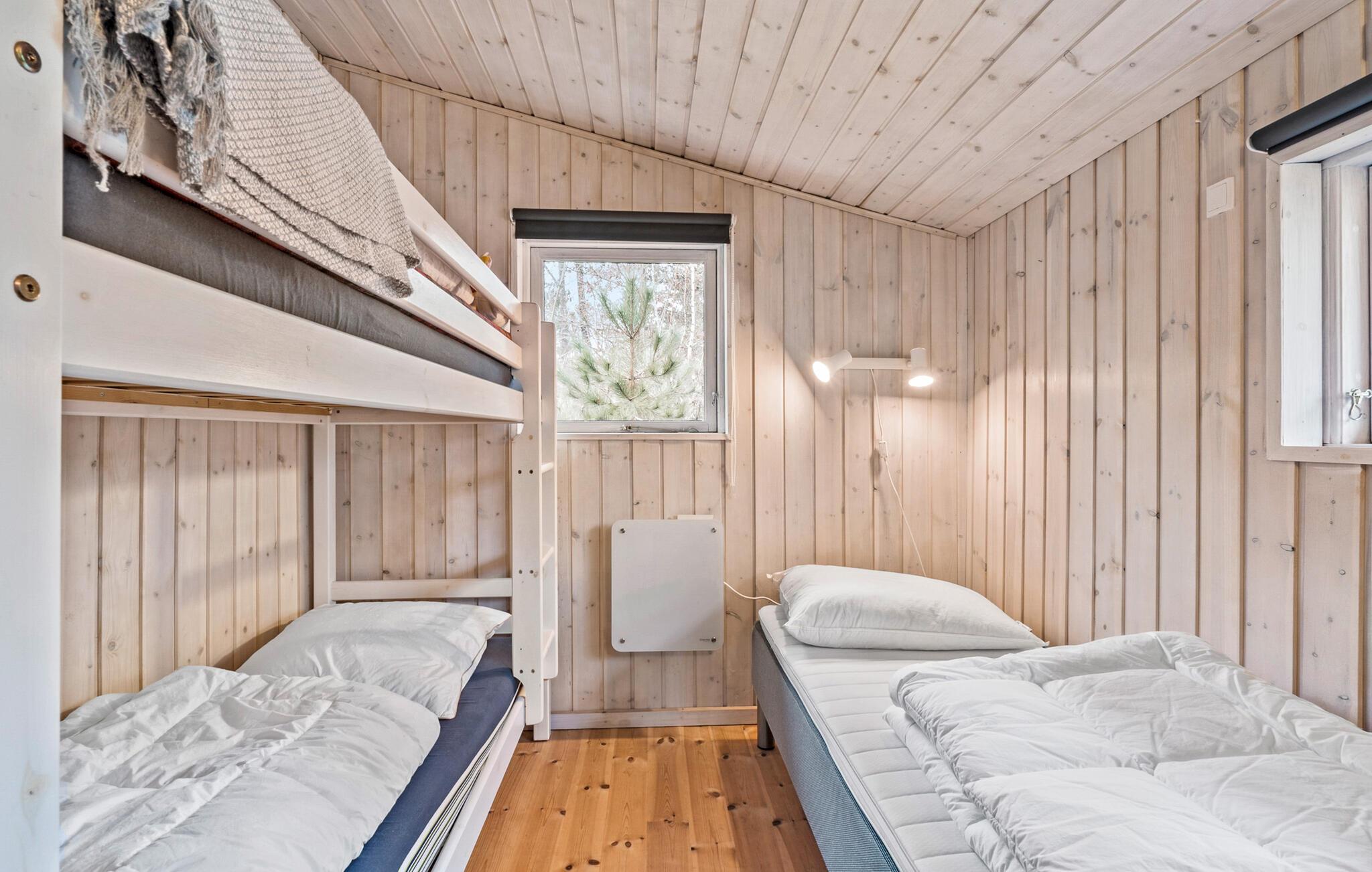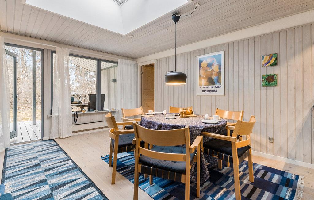 Freuen Sie sich auf dieses einladende Ferienhaus in der Nähe von Veddinge Strand, das sich auf zwei Ebenen verteilt und die ideale Umgebung zum Ausruhen und für schöne Familienzeit ist. Der familiäre Charme und die hellen Räume lassen Sie vor allem im Wohnraum zusammenkommen, der die Küche, den Ess- sowie Wohnbereich verbindet. Nehmen Sie daher, während des Kochens an den Gesprächen auf dem Sofa teil und bereiten gemeinsam den Esstisch auf der Terrasse vor. Im Anschluss an das Essen können Sie auf der überdachten Terrasse Brettspiele spielen oder Eichhörnchen in den Bäumen beobachten.