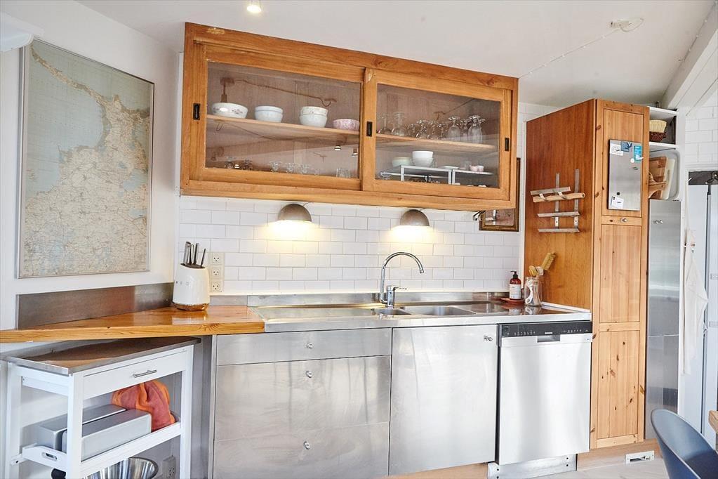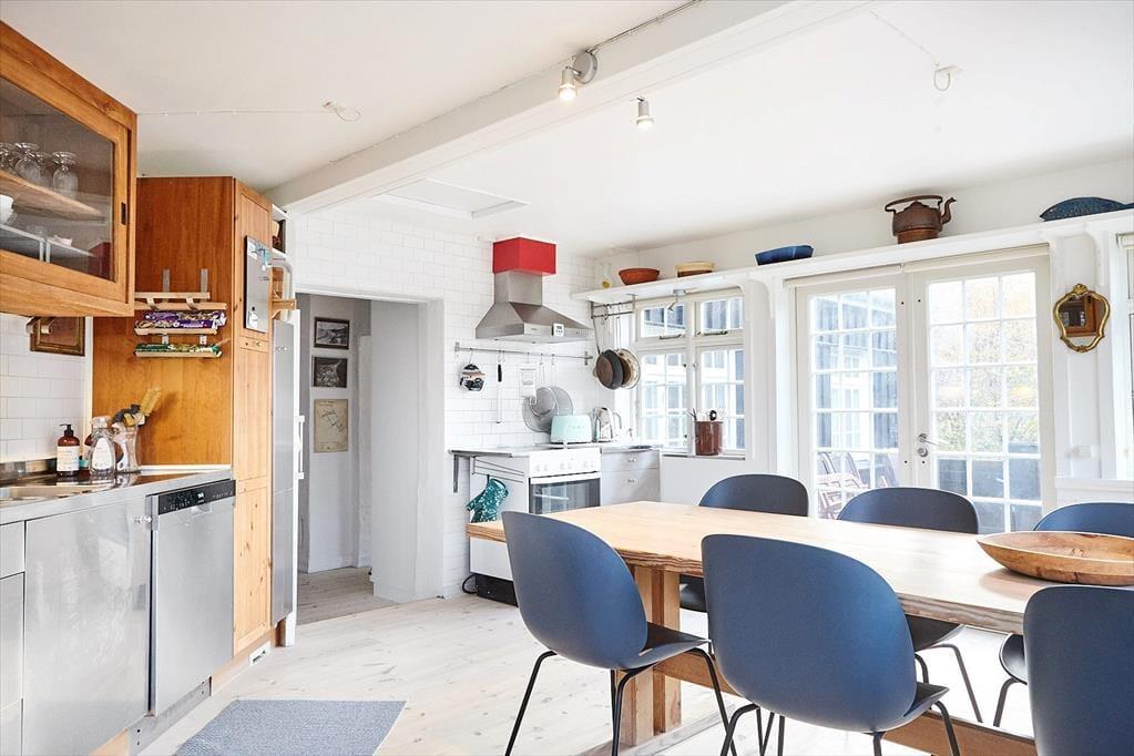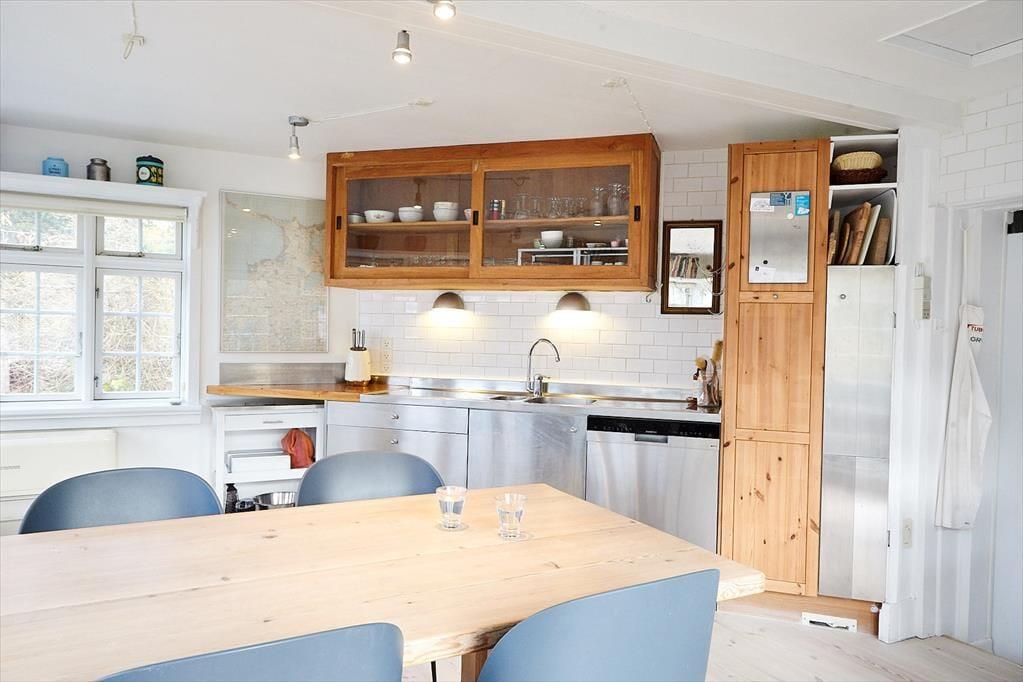 Das Sommerhaus liegt in der 2. Reihe mit Meerblick und eigener Treppe zum Wasser. Über einen kleinen Weg, gegenüber vom Haus, gelangen Sie an den Strand. Die Umgebung ist schön und hügelig. Falls Sie also ein wenig an Ihrer Kondition feilen möchten, sollten Sie von hier aus zu herrlichen Rad- und Wandertouren aufbrechen. Keinesfalls entgehen lassen sollten Sie sich eine Tour entlang des Vindeklide Strandvejs, während der sich Ihnen fantastische Aussichten auf die Inseln Sejerø und Nekselø eröffnen. Auch einen Spaziergang auf der Vejrhøj können wir Ihnen nur ans Herz legen. Dort werden Sie hautnah spüren und erleben, was den Geopark Odsherred so einzigartig macht. Golfspieler dürfen sich auf einen nahe gelegenen, sportlich anspruchsvollen Golfplatz freuen. Mit kulinarischen Höchstleistungen lockt hingegen das grandiose Gourmet-Restaurant auf Schloss Dragsholm.