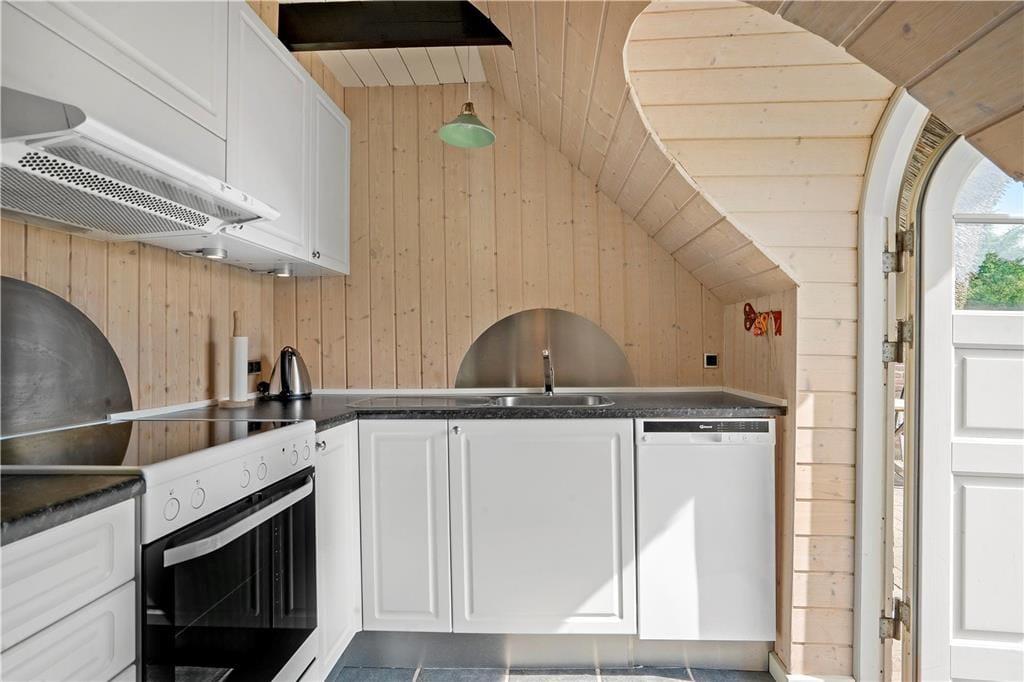 Unmittelbar nach dem Betreten dieses kleinen, richtig schönen Ferienhauses, befinden Sie sich in der kleinen aber guten Küche. Diese beinhaltet alles, was Sie für die Zubereitung Ihrer täglichen Mahlzeiten benötigen. Das gesamte Haus besticht mit schrägen Wänden, die maßgeblich zur gemütlichen Wohnatmosphäre beitragen. Im stimmungsvollen Wohnraum sorgt ein Kaminofen an kühlen Abenden für Wärme und Gemütlichkeit. Durch die Terrassentür des Wohnraumes gelangen Sie direkt hinaus auf die Terrasse und weiter in den Garten. Ihnen stehen zwei Schlafzimmer mit je einem Doppelbett und Schrankfläche und ein Schlafraum mit zwei Einzelbetten zur Verfügung. Das kleine Badezimmer befindet sich praktischerweise zwischen den Schlafräumen.