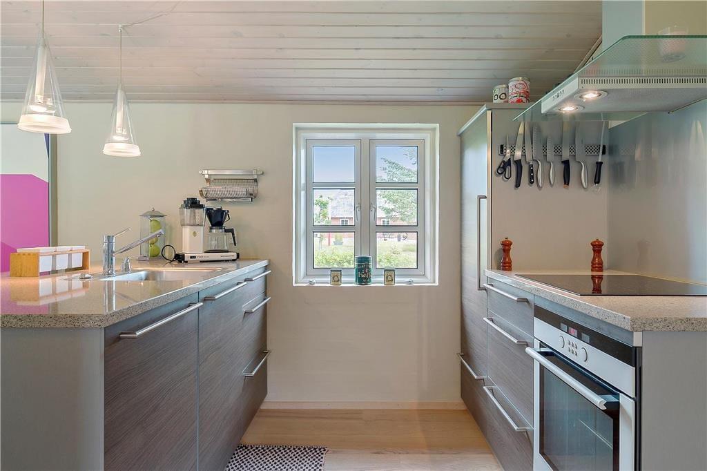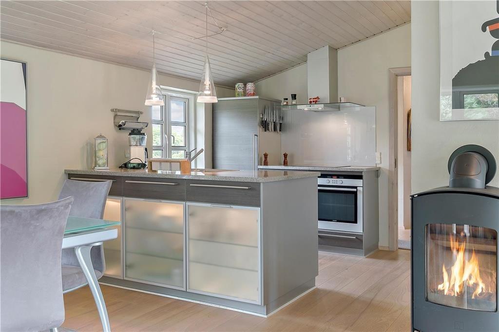 Da Küche und Aufenthaltsbereich offen miteinander kombiniert sind, genießen Sie selbst während der Essenszubereitung die Nähe zu Ihren Lieben. Die schöne Einrichtung verleiht dem Wohnraum eine gemütliche, entspannte Atmosphäre. Die Platzierung der Wohnzimmermöbel ist so gewählt, dass Sie während geselliger Filmabende gleichzeitig auf den gemütlich flackernden Kaminofen blicken. Der Wohnraum verwöhnt darüber hinaus mit einem direkten Zugang zu Terrasse und Garten. Das Badezimmer besticht mit einer großen Badewanne, der nach einem langen Urlaubstag pure Erholung und Endspannung bietet. Einer der Schlafräume beinhaltet ein angenehm großes Doppelbett und viel Schrankfläche.
