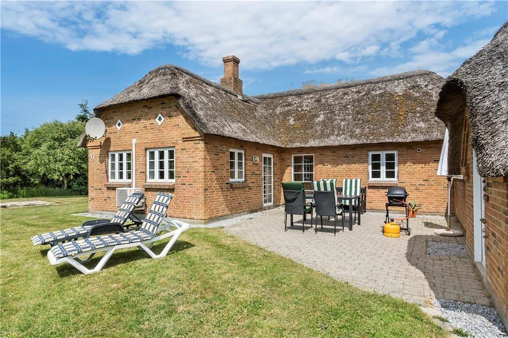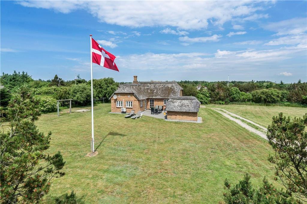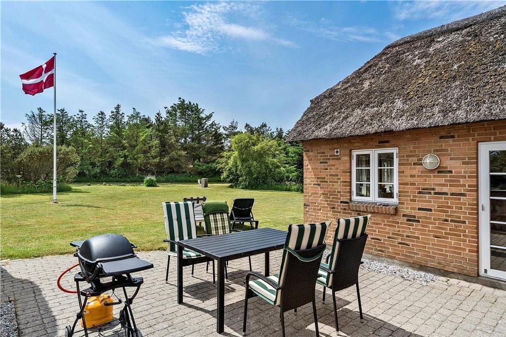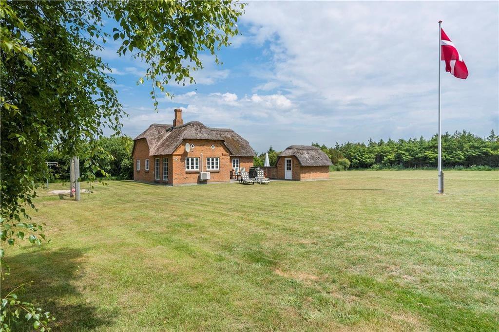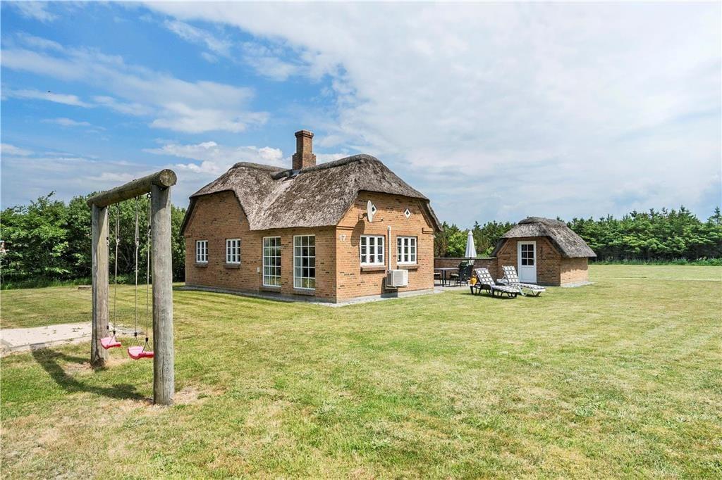 Das ausgesprochen schöne Reetdachferienhaus ruht auf einem attraktiven Naturgrundstück in Vedersø Klit. Das Grundstück ist von Bäumen und Büschen umgeben, sodass Sie sich im Freien angenehm ungestört bewegen können. Ihre Kinder dürfen sich auf eine Schaukel und eine Sandkiste freuen. Gute Gartenmöbel, Liegestühle und ein Grill laden zu entspannten und geselligen Stunden im Kreise Ihrer Lieben ein. Ihren Pkw können Sie direkt am Haus abstellen.