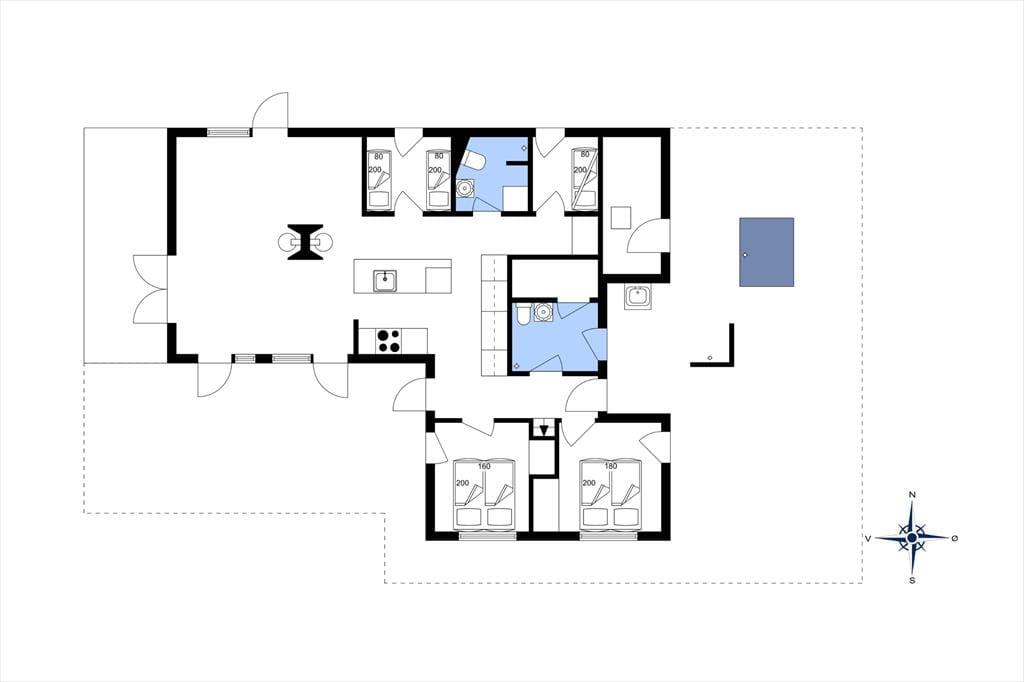 Das Haus liegt mitten im Ferienhausgebiet Vedersø Klit auf einem außergewöhnlich schönen Naturgrundstück mit diversen gemütlichen Eckchen. Das Grundstück ist von Büschen und Bäumen umgeben. Lediglich 200 Meter trennen Sie von der Nordsee. Vor der Süd- und der Westseite des Hauses erstreckt sich eine große, überdachte Terrassenanlage. Auf der nach Osten gewandten Terrasse erwarten Sie eine Außenküche und fließendem Wasser und eine Außendusche. Gute Gartenmöbel, Liegestühle, ein Sonnenschirm und ein Grill laden zu gemütlichen Stunden und geselligen Runden ein. Ihren Pkw parken Sie direkt am Haus.