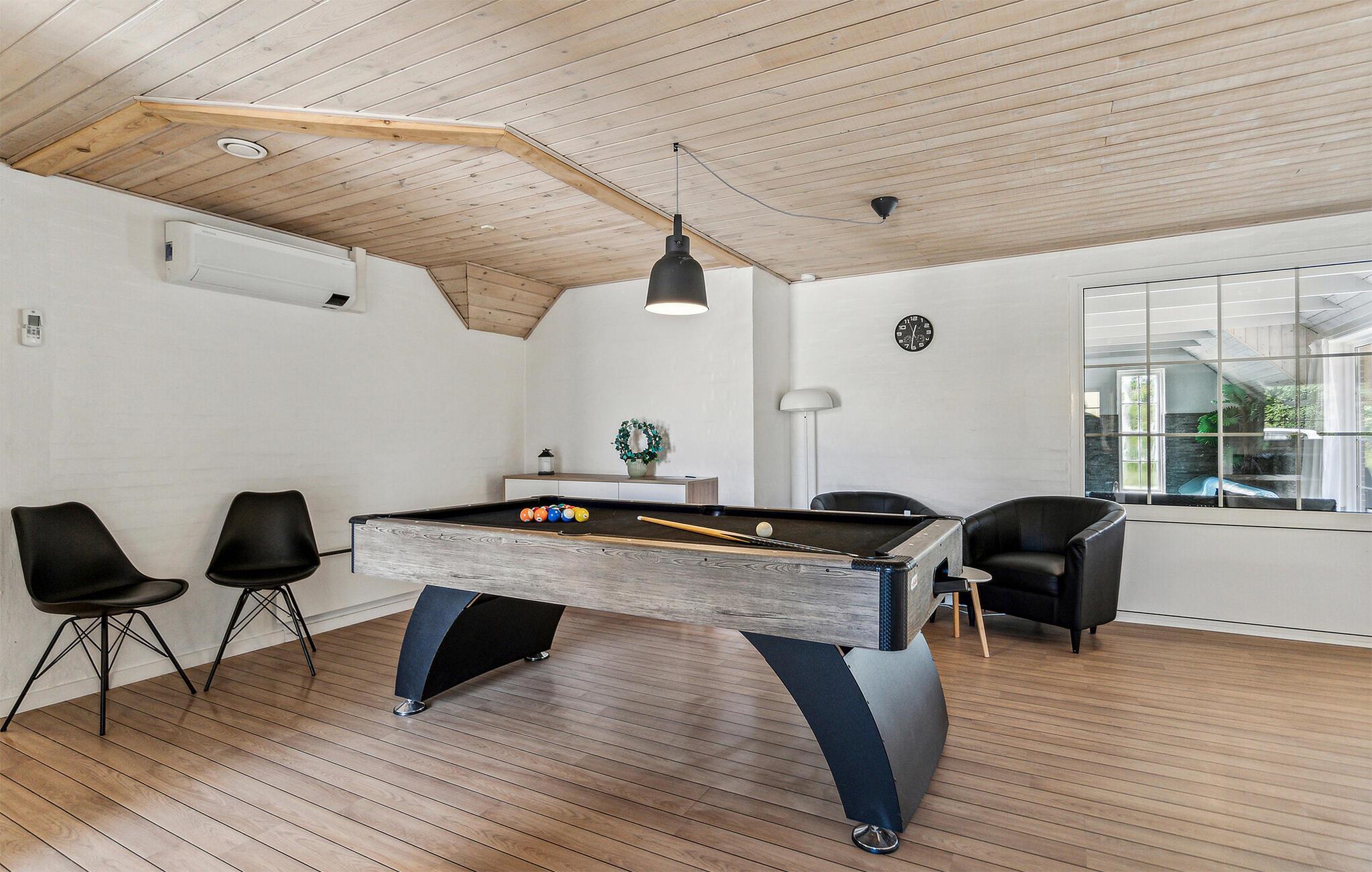 Willkommen in diesem modernen und hellen Ferienhaus. Hier können Sie eine wunderbare Zeit mit Ihrer Familie oder Ihren Freunden verbringen. Durch großartige Extras wie Swimmingpool, Whirlpool und Billardtisch können Sie einen Hauch von Luxus erfahren. Kinder und das vierbeinige Familienmitglied können herrlich im Garten herumtollen und sich auf den Spielgeräten austoben. Währenddessen erholen sich die Erwachsenen auf der Terrasse bei einem kühlen Getränk und genießen die Sonnenstrahlen. Nutzen Sie auch die hauseigene Sauna, um sich nach erlebnisreichen Tagen zu entspannen.